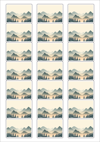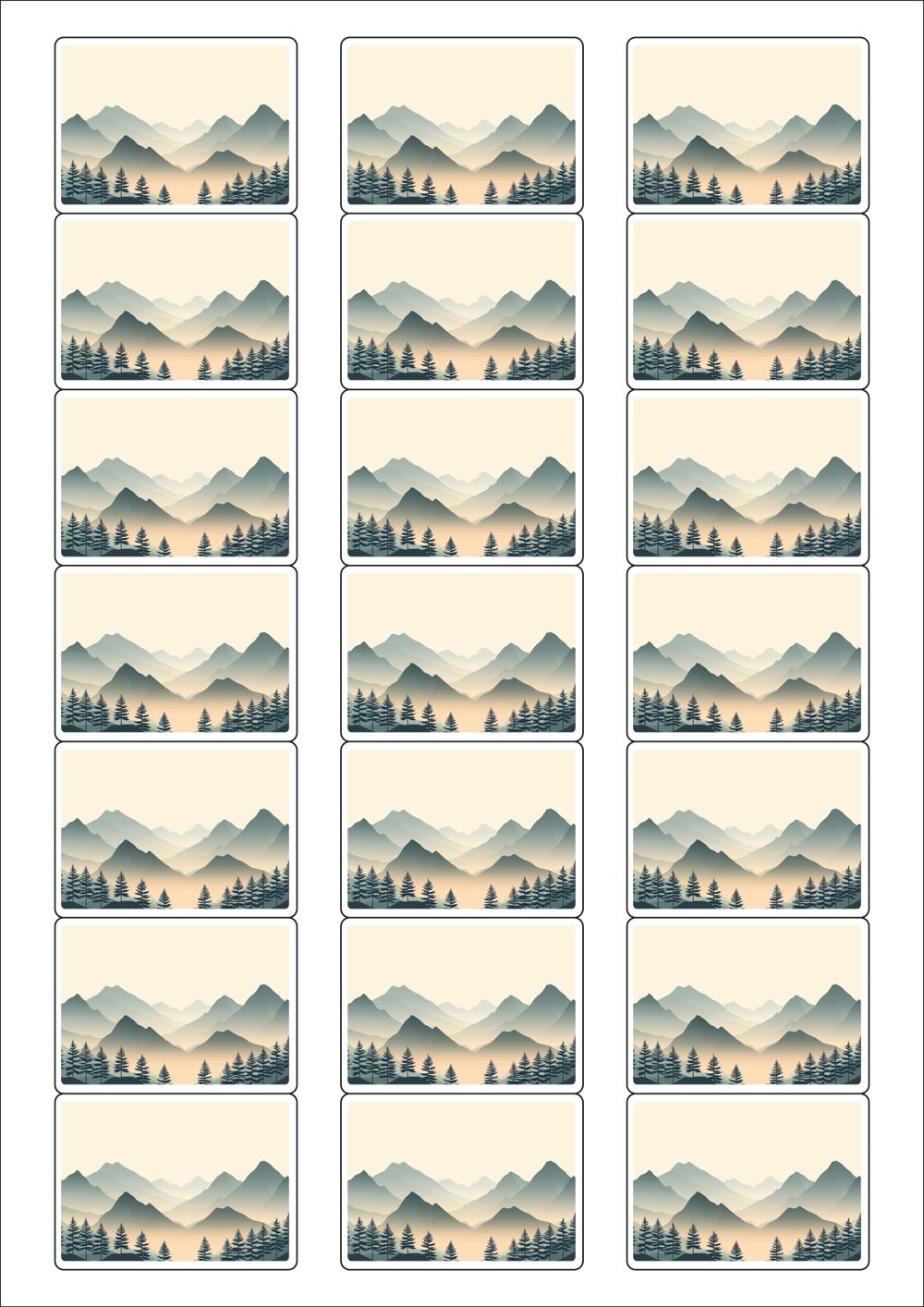 디자인된 A4 라벨지 출력용 라벨스티커, 규격코드: 837, 디자인코드: DA1572(고요한 아침의 숲), 55 x 40 (mm)