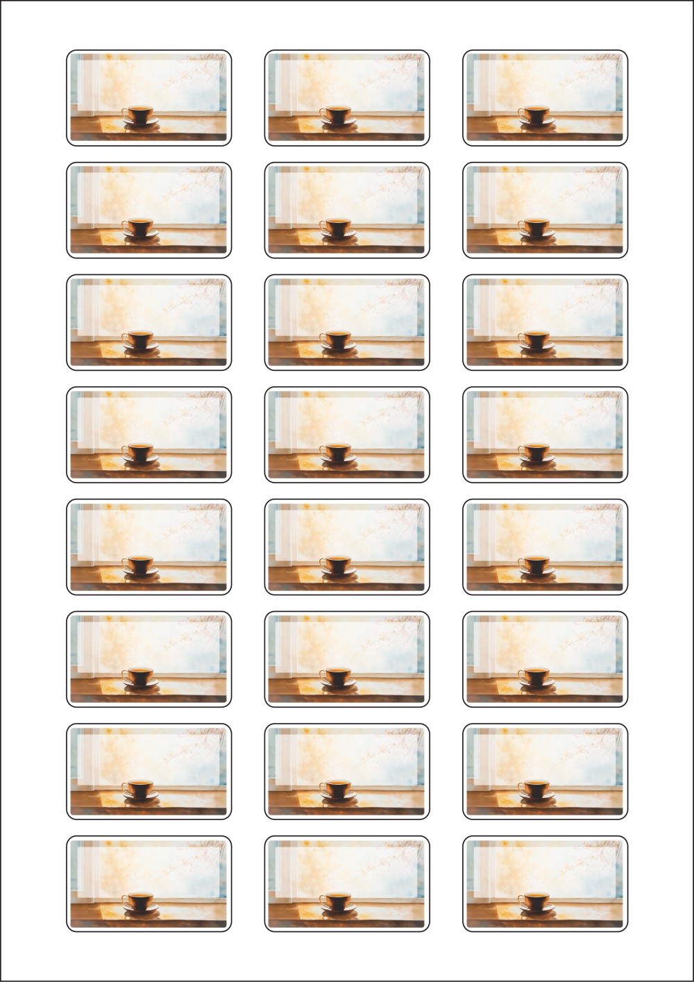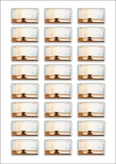 디자인된 A4 라벨지 출력용 라벨스티커, 규격코드: 838, 디자인코드: DA1425(가을날의 카페 창가에서), 50 x 29 (mm)
