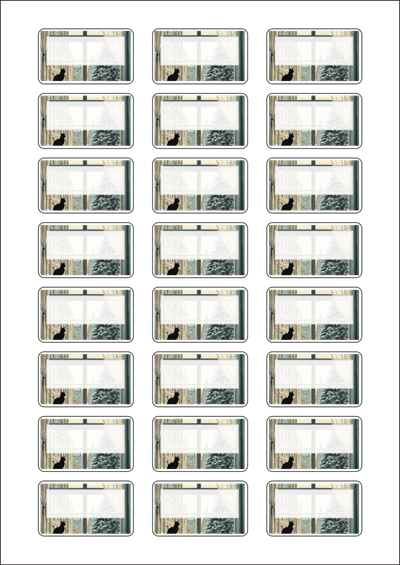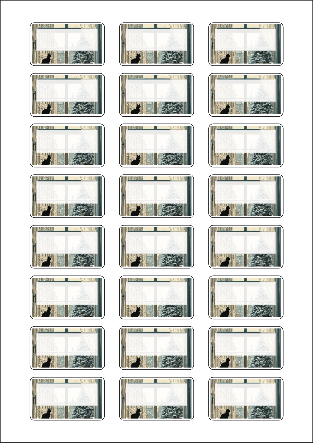 디자인된 A4 라벨지 출력용 라벨스티커, 규격코드: 838, 디자인코드: DA1494(오후엔 눈 그리고, 고양이), 50 x 29 (mm)