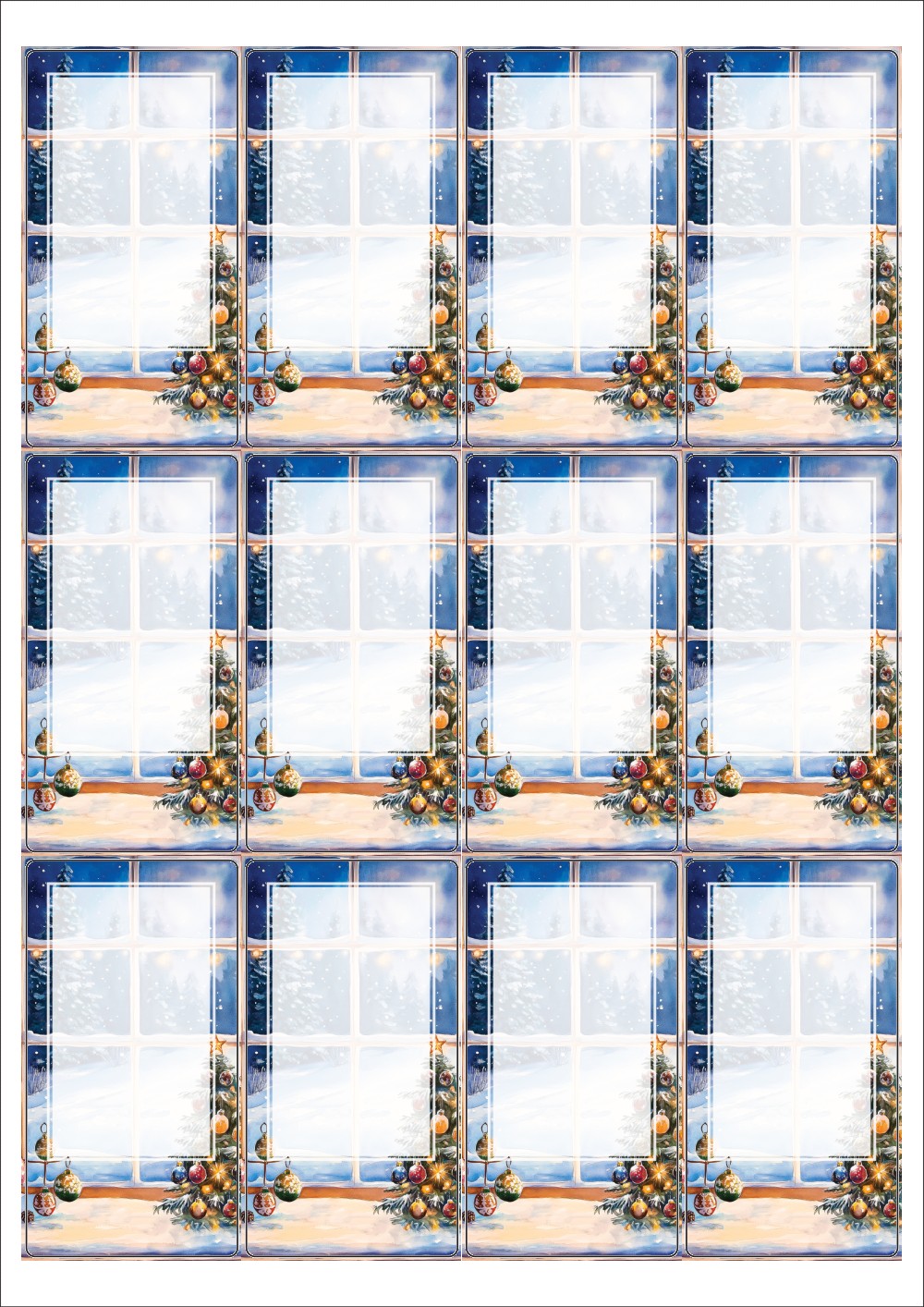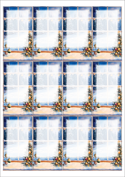 디자인된 A4 라벨지 출력용 라벨스티커, 규격코드: 843, 디자인코드: DA1466(고요한 화이트 크리스마스), 48 x 90 (mm)