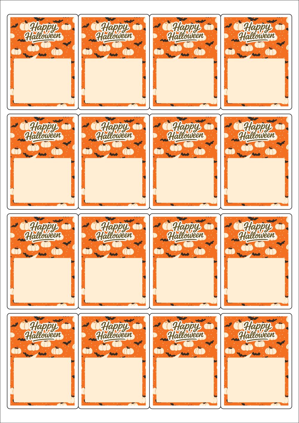 디자인된 A4 라벨지 출력용 라벨스티커, 규격코드: 844, 디자인코드: DA1404(할로윈데이 메세지), 50 x 67 (mm)