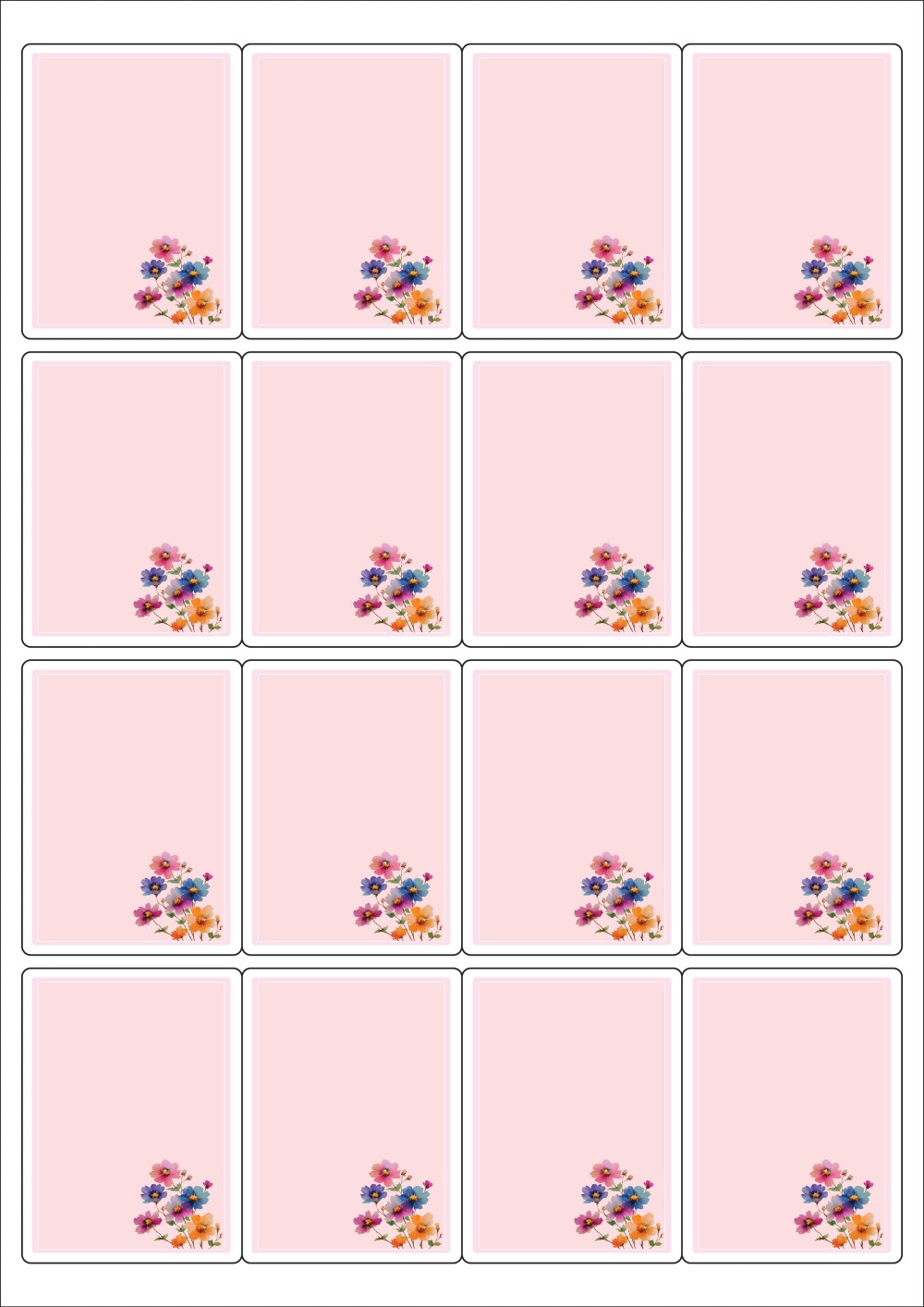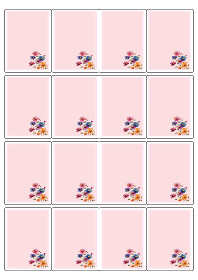 디자인된 A4 라벨지 출력용 라벨스티커, 규격코드: 844, 디자인코드: DA1451(꽃편지), 50 x 67 (mm)