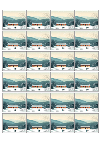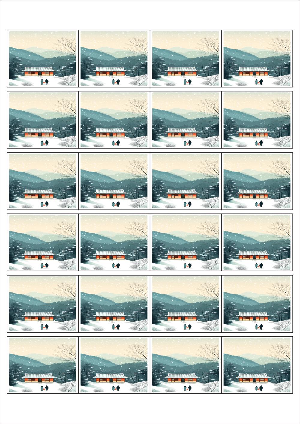 디자인된 A4 라벨지 출력용 라벨스티커, 규격코드: 846, 디자인코드: DA1577(귀향, 눈내리는 설날), 50 x 40 (mm)