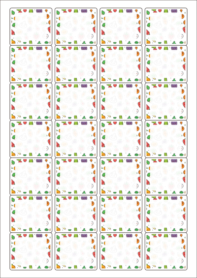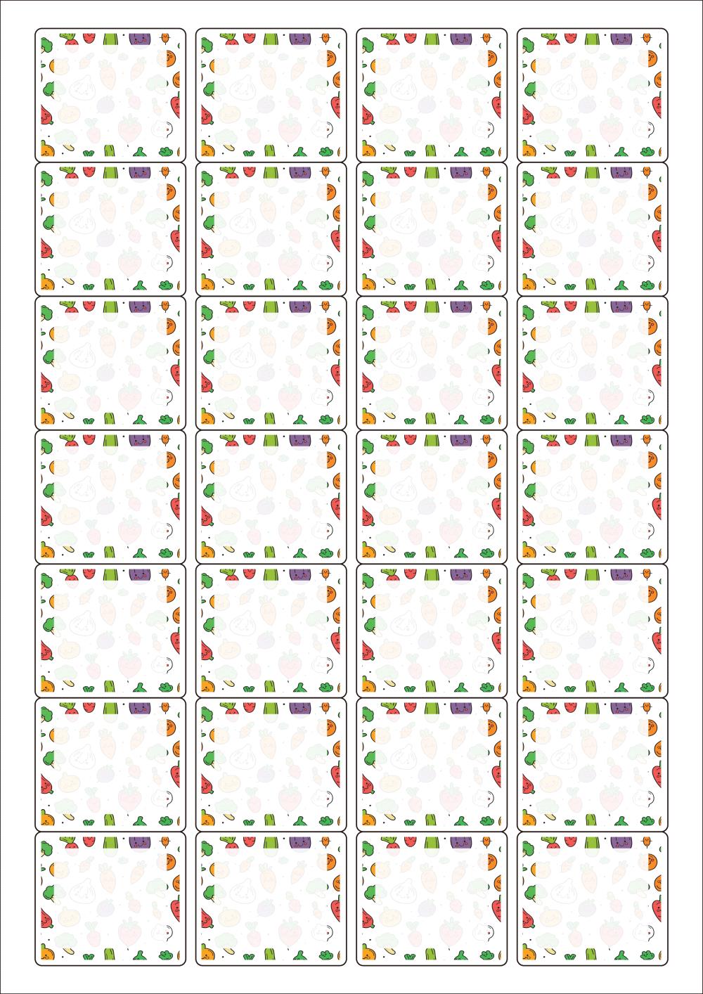 디자인된 A4 라벨지 출력용 라벨스티커, 규격코드: 847, 디자인코드: DA1376(건강한 야채 이야기), 45 x 40 (mm)