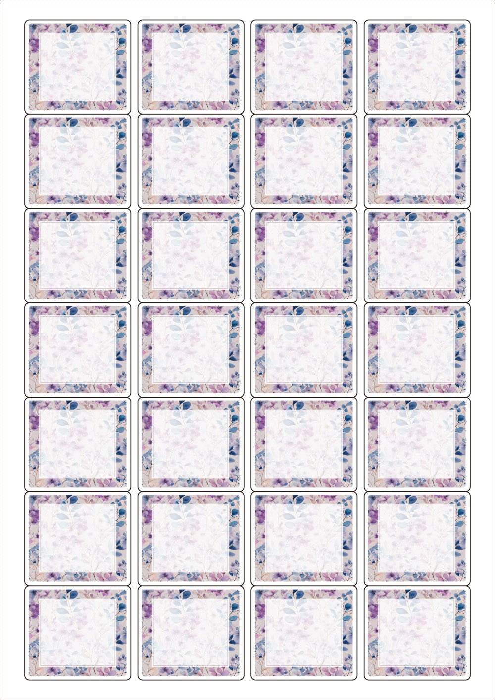 디자인된 A4 라벨지 출력용 라벨스티커, 규격코드: 847, 디자인코드: DA1421(꽃무늬 포장지2), 45 x 40 (mm)
