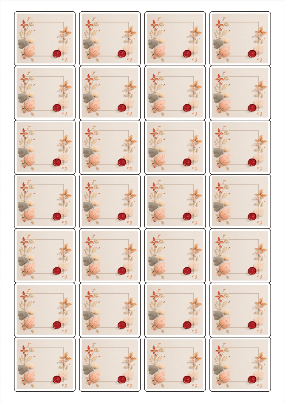 디자인된 A4 라벨지 출력용 라벨스티커, 규격코드: 847, 디자인코드: DA1429(가을날의 메세지2), 45 x 40 (mm)