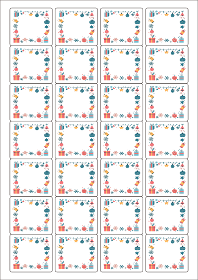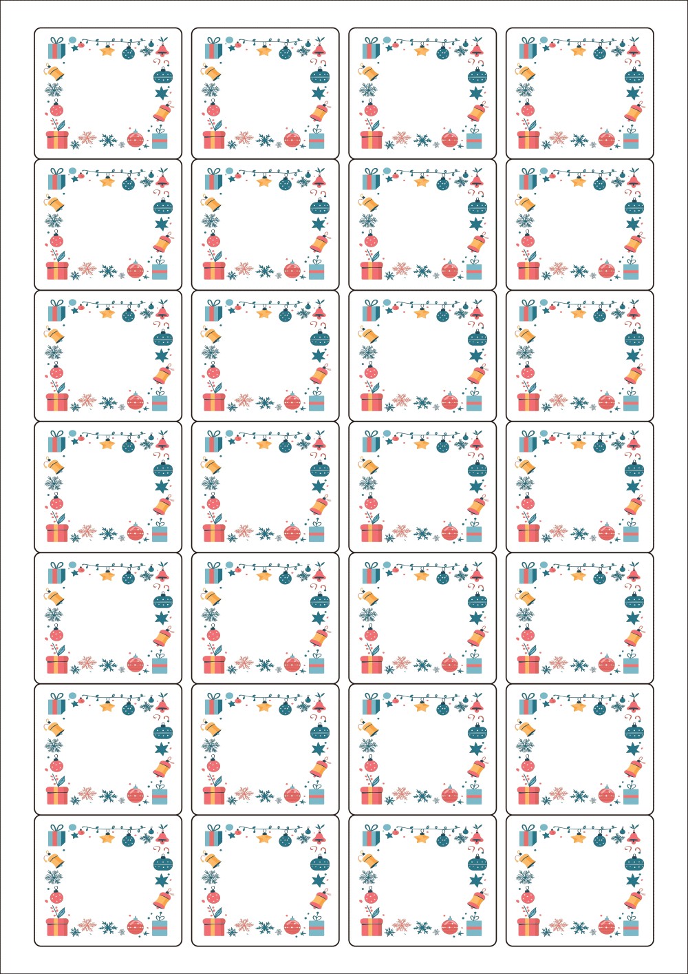 디자인된 A4 라벨지 출력용 라벨스티커, 규격코드: 847, 디자인코드: DA1458(크리스마스를 장식해요), 45 x 40 (mm)