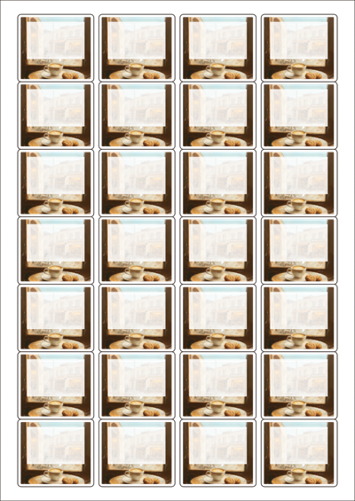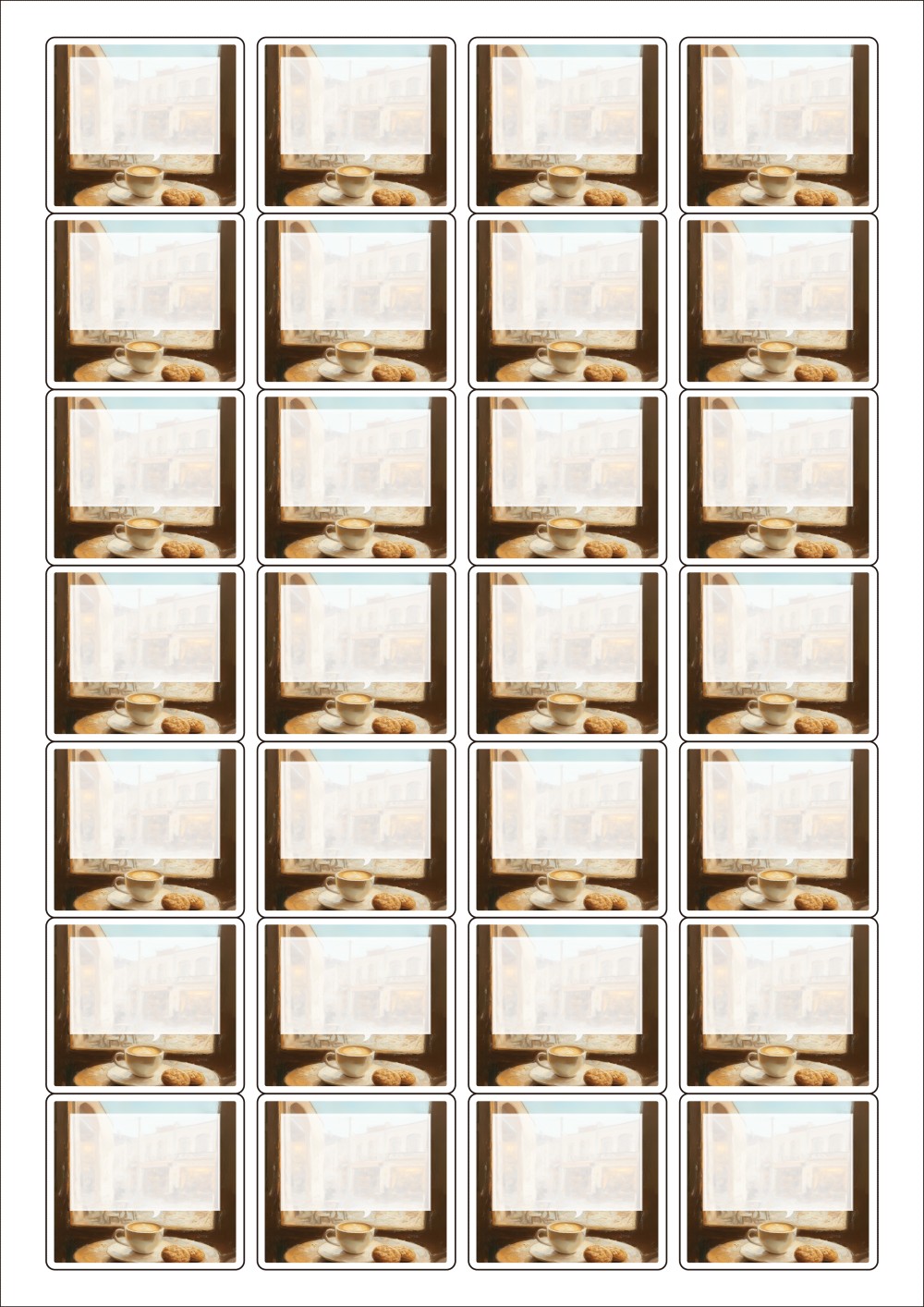 디자인된 A4 라벨지 출력용 라벨스티커, 규격코드: 847, 디자인코드: DA1479(레트로 감성 카페에서), 45 x 40 (mm)