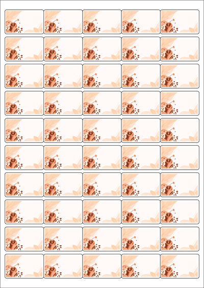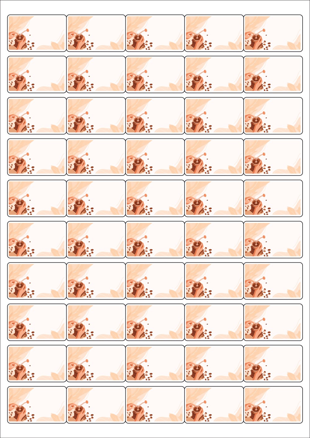 디자인된 A4 라벨지 출력용 라벨스티커, 규격코드: 850, 디자인코드: DA1411(향긋한 커피타임), 40 x 25 (mm)