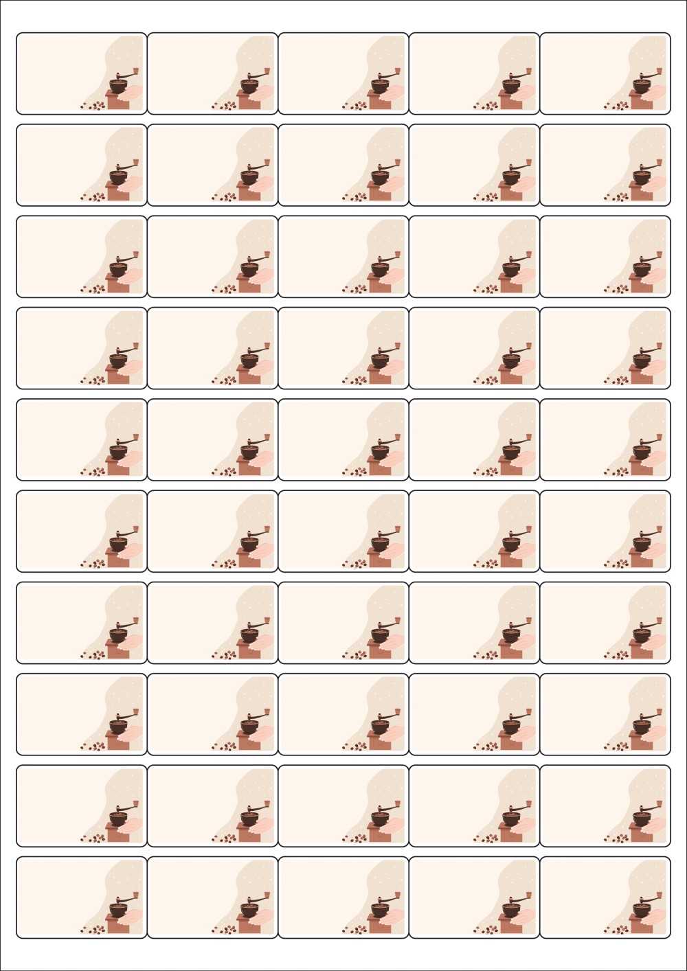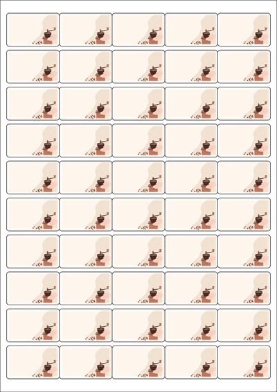 디자인된 A4 라벨지 출력용 라벨스티커, 규격코드: 850, 디자인코드: DA1412(감사의 커피한잔), 40 x 25 (mm)