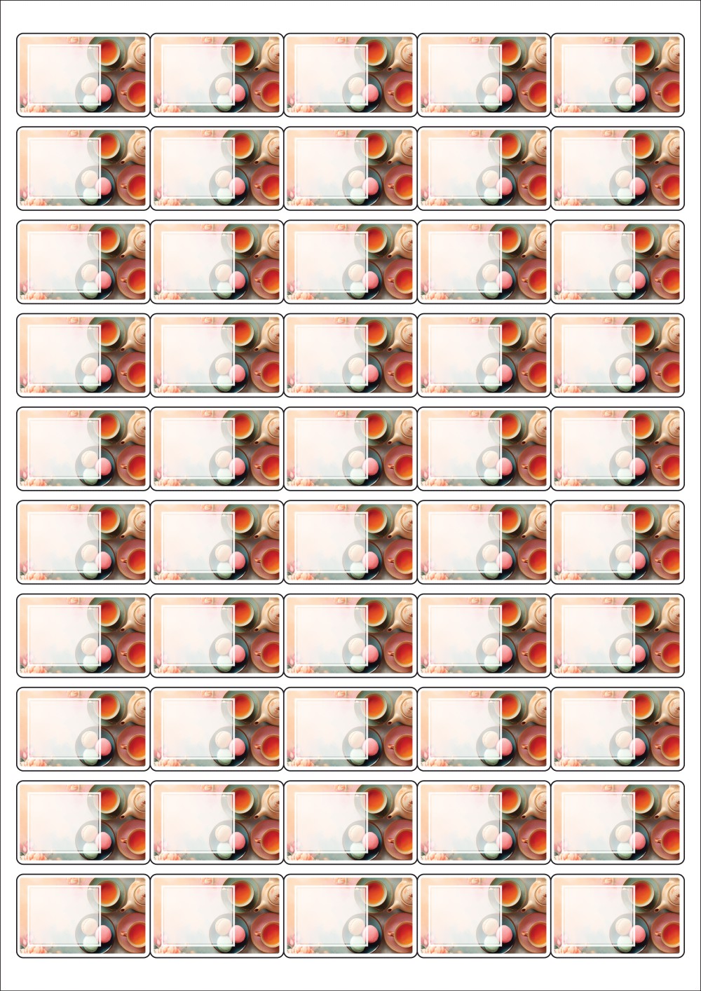 디자인된 A4 라벨지 출력용 라벨스티커, 규격코드: 850, 디자인코드: DA1431(향긋한 아침에), 40 x 25 (mm)