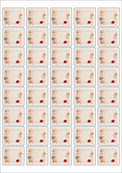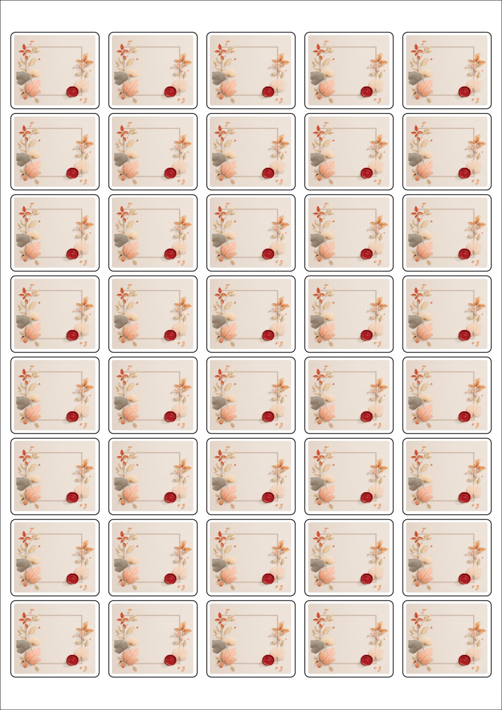 디자인된 A4 라벨지 출력용 라벨스티커, 규격코드: 858, 디자인코드: DA1429(가을날의 메세지2), 37 x 32 (mm)
