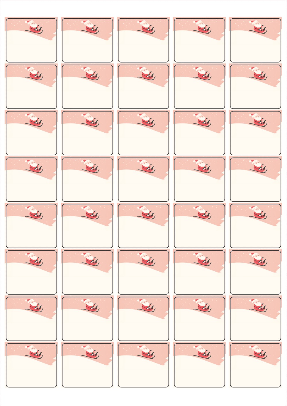 디자인된 A4 라벨지 출력용 라벨스티커, 규격코드: 858, 디자인코드: DA1482(산타 신난다), 37 x 32 (mm)