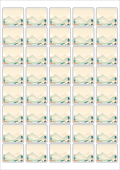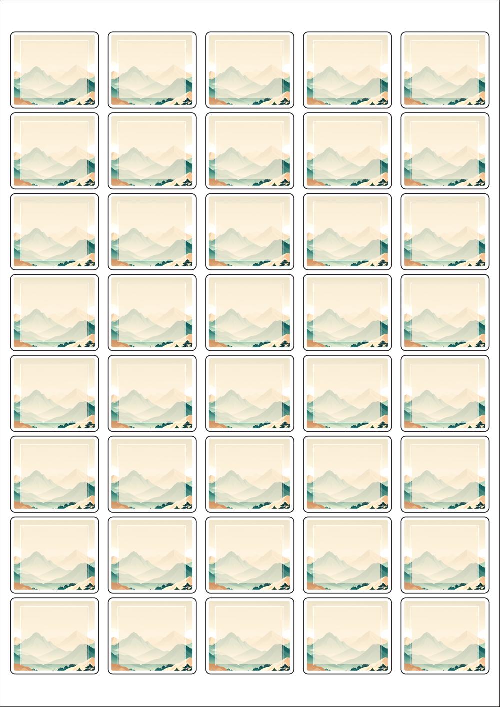 디자인된 A4 라벨지 출력용 라벨스티커, 규격코드: 858, 디자인코드: DA1565(자연의 물결1), 37 x 32 (mm)