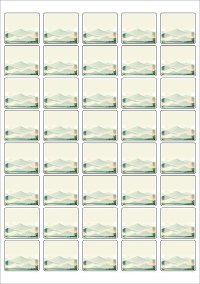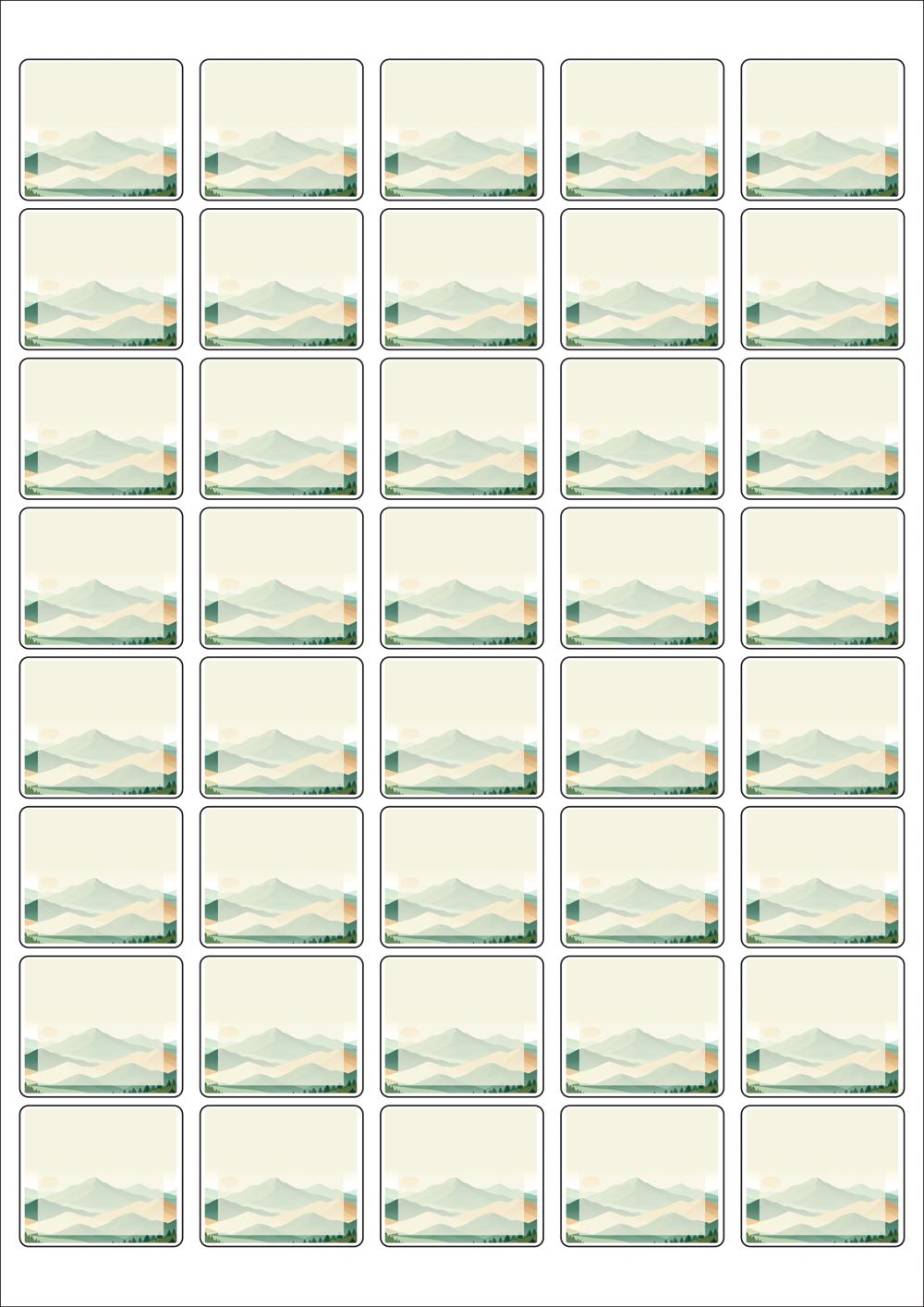 디자인된 A4 라벨지 출력용 라벨스티커, 규격코드: 858, 디자인코드: DA1566(자연의 물결2), 37 x 32 (mm)