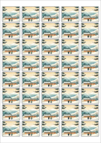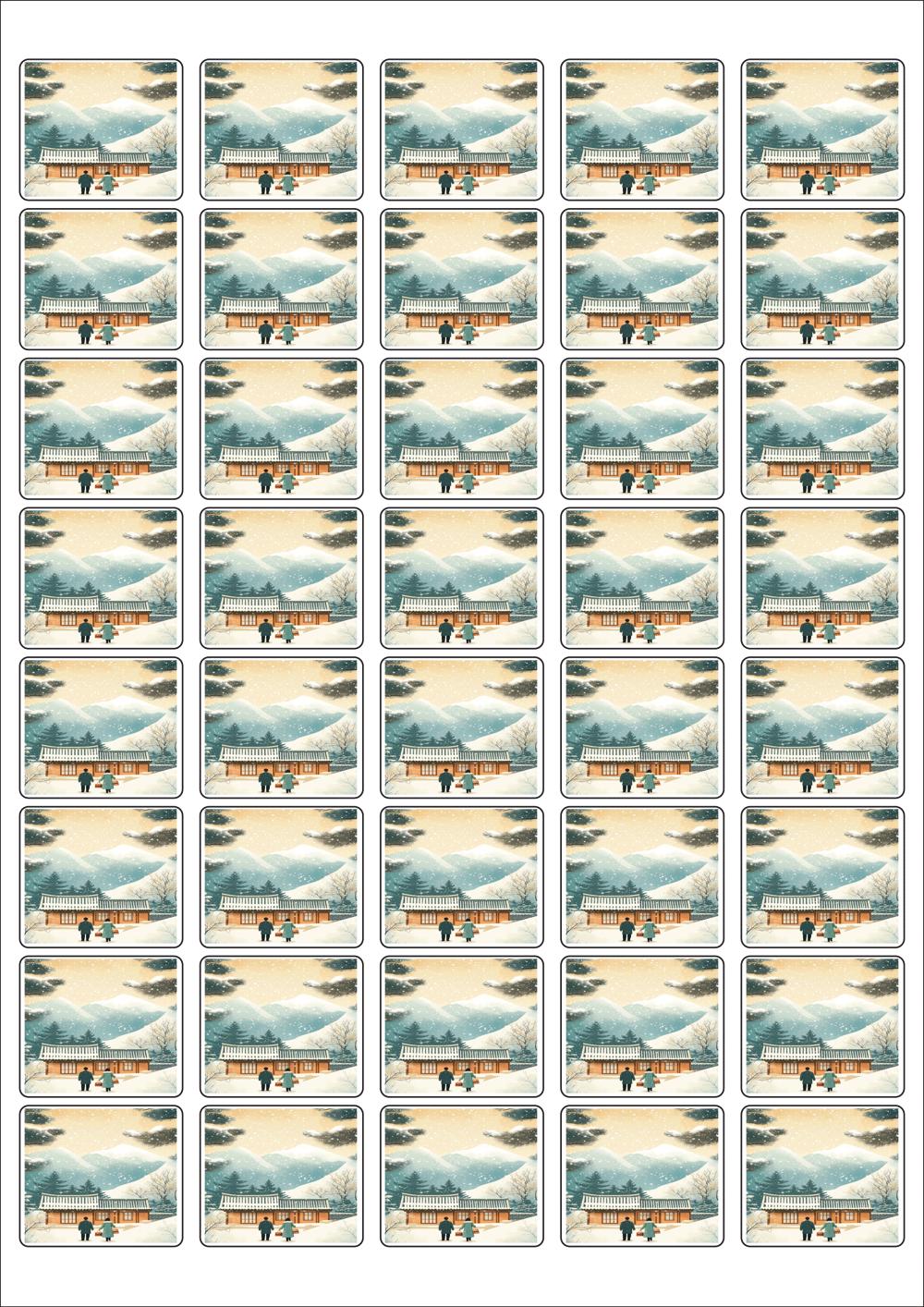 디자인된 A4 라벨지 출력용 라벨스티커, 규격코드: 858, 디자인코드: DA1575(설, 따뜻한 귀향), 37 x 32 (mm)