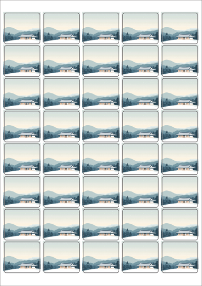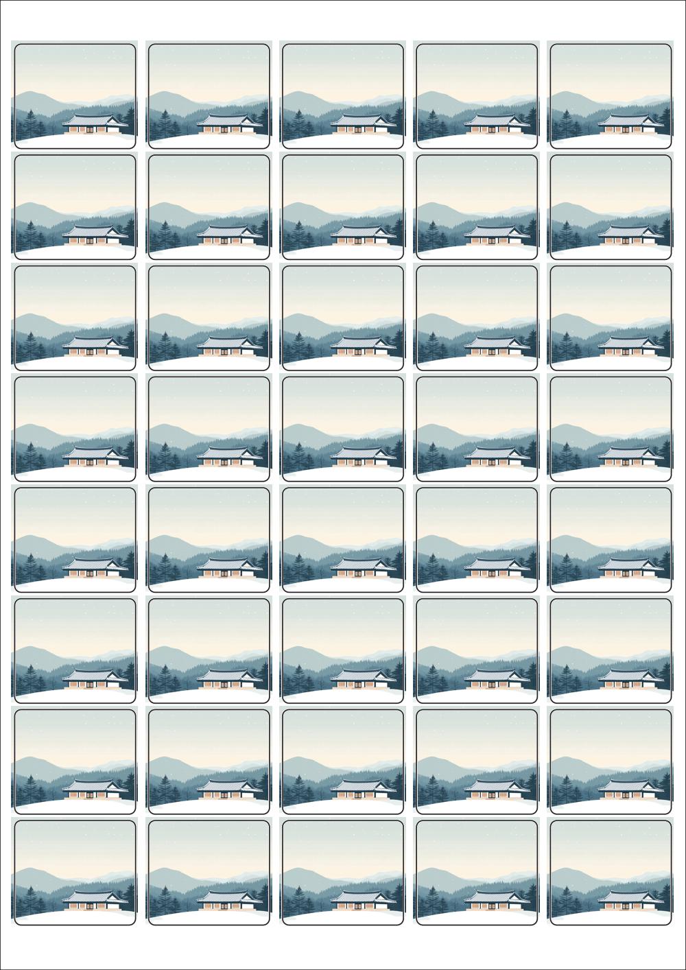 디자인된 A4 라벨지 출력용 라벨스티커, 규격코드: 858, 디자인코드: DA1576(고요한 마음과 다정한 인사), 37 x 32 (mm)