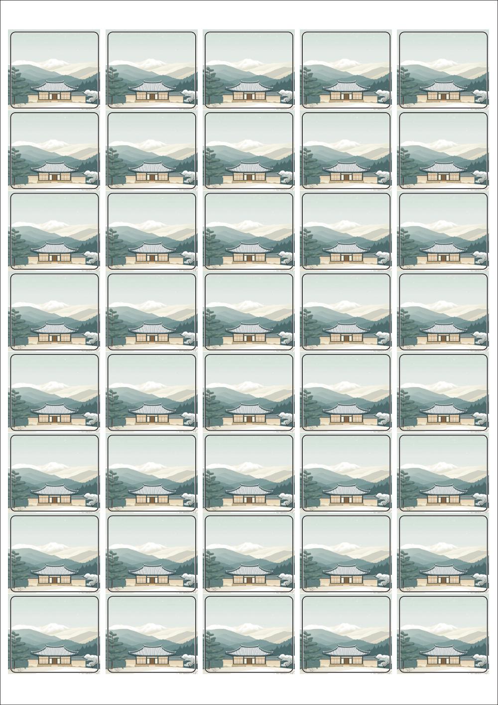 디자인된 A4 라벨지 출력용 라벨스티커, 규격코드: 858, 디자인코드: DA1578(고요한 설날의 아침), 37 x 32 (mm)