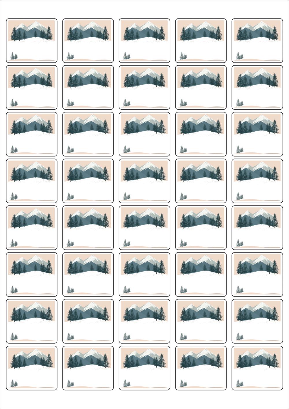 디자인된 A4 라벨지 출력용 라벨스티커, 규격코드: 858, 디자인코드: DA1582(저 잘지내요~ 겨울산에 인사), 37 x 32 (mm)