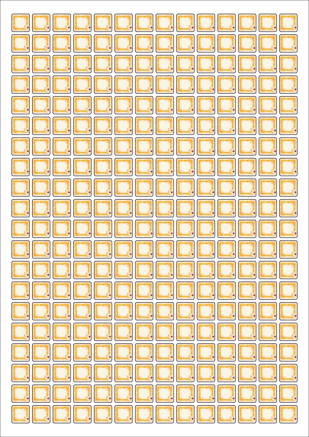 디자인된 A4 라벨지 출력용 라벨스티커, 규격코드: 880, 디자인코드: DA1426(은행잎 편지), 12 x 12 (mm)