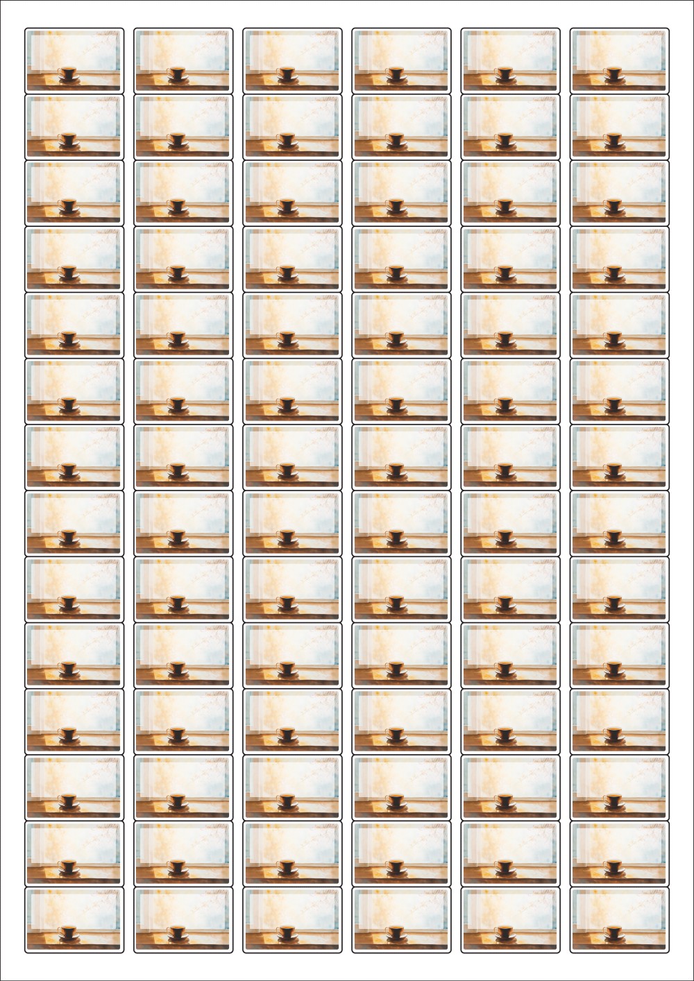 디자인된 A4 라벨지 출력용 라벨스티커, 규격코드: 884, 디자인코드: DA1425(가을날의 카페 창가에서), 30 x 20 (mm)