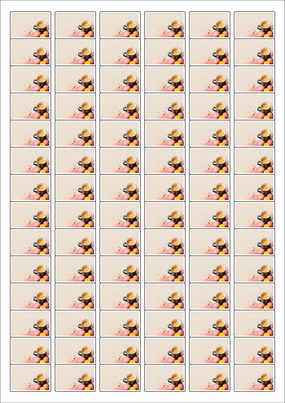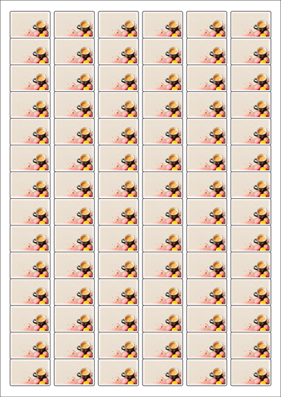 디자인된 A4 라벨지 출력용 라벨스티커, 규격코드: 884, 디자인코드: DA1445(차와 함께하는 즐거운 힐링타임), 30 x 20 (mm)