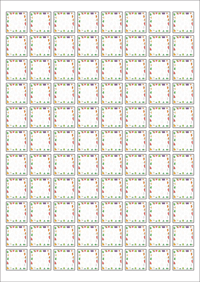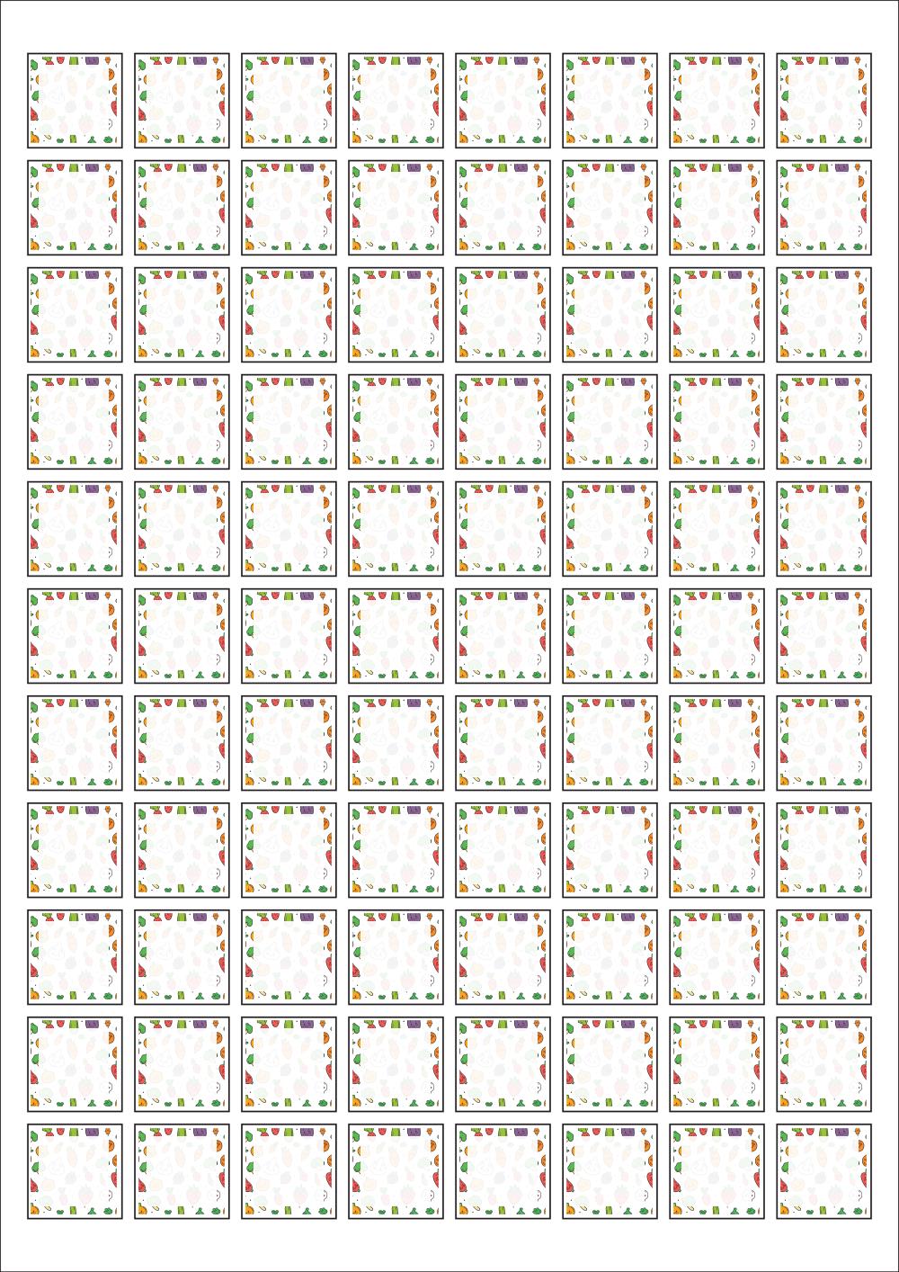 디자인된 A4 라벨지 출력용 라벨스티커, 규격코드: 888, 디자인코드: DA1376(건강한 야채 이야기), 22 x 22 (mm)
