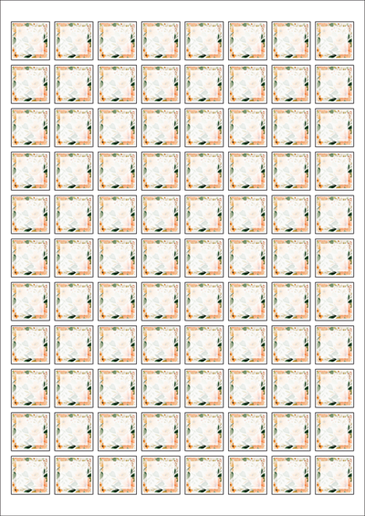 디자인된 A4 라벨지 출력용 라벨스티커, 규격코드: 888, 디자인코드: DA1420(꽃무늬 포장지1), 22 x 22 (mm)