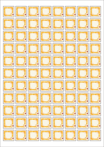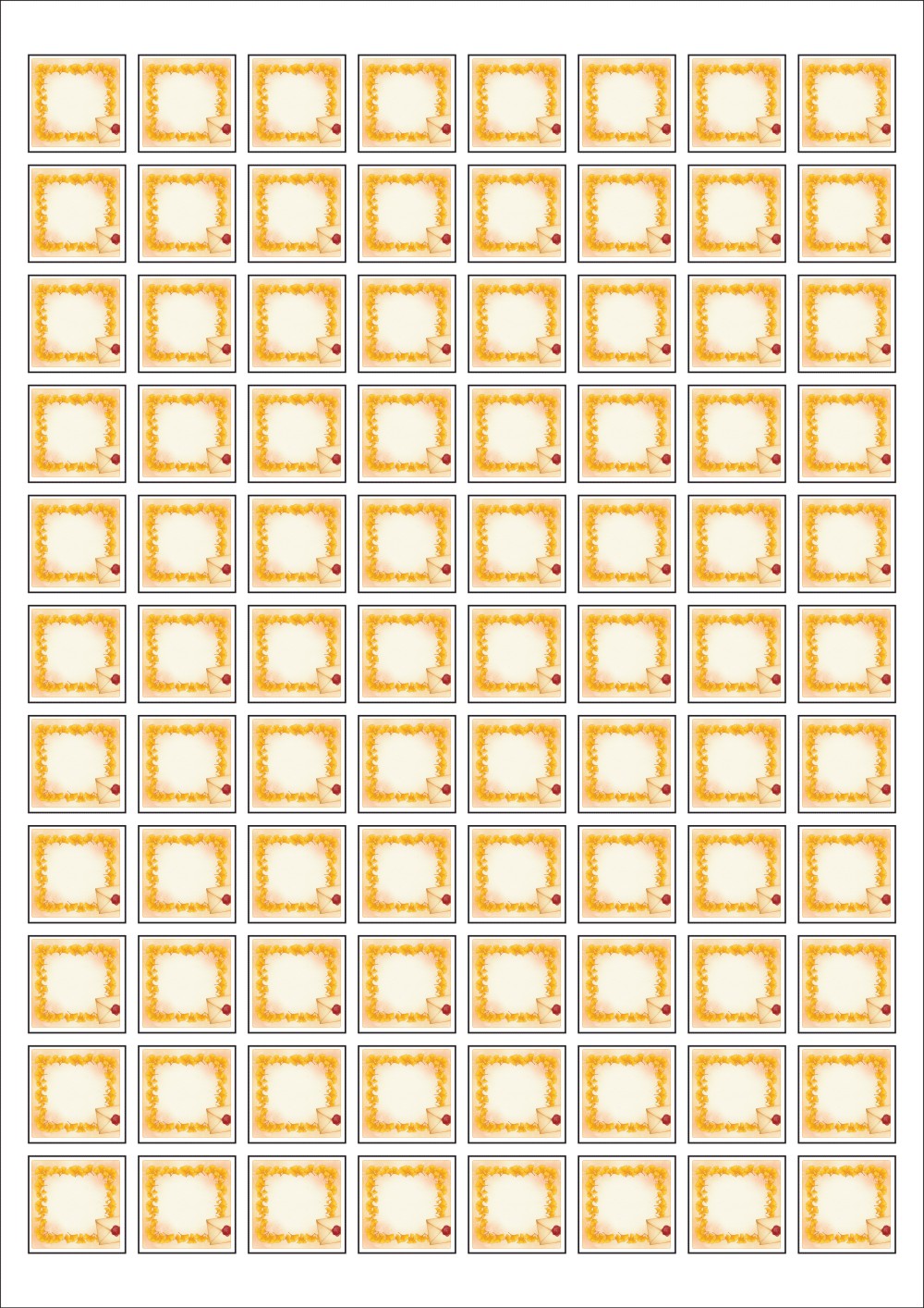 디자인된 A4 라벨지 출력용 라벨스티커, 규격코드: 888, 디자인코드: DA1426(은행잎 편지), 22 x 22 (mm)