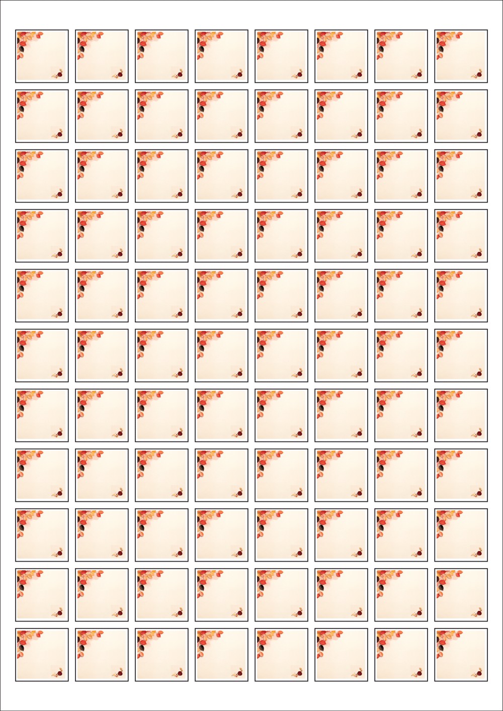 디자인된 A4 라벨지 출력용 라벨스티커, 규격코드: 888, 디자인코드: DA1428(가을날의 메세지1), 22 x 22 (mm)