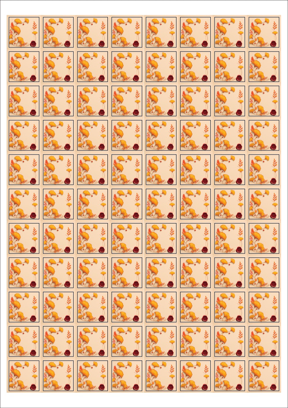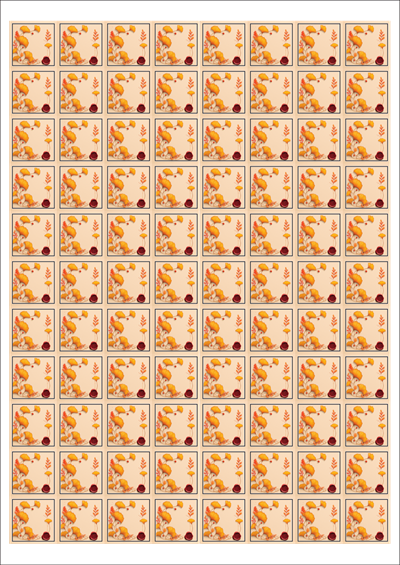 디자인된 A4 라벨지 출력용 라벨스티커, 규격코드: 888, 디자인코드: DA1437(은행잎 메모), 22 x 22 (mm)