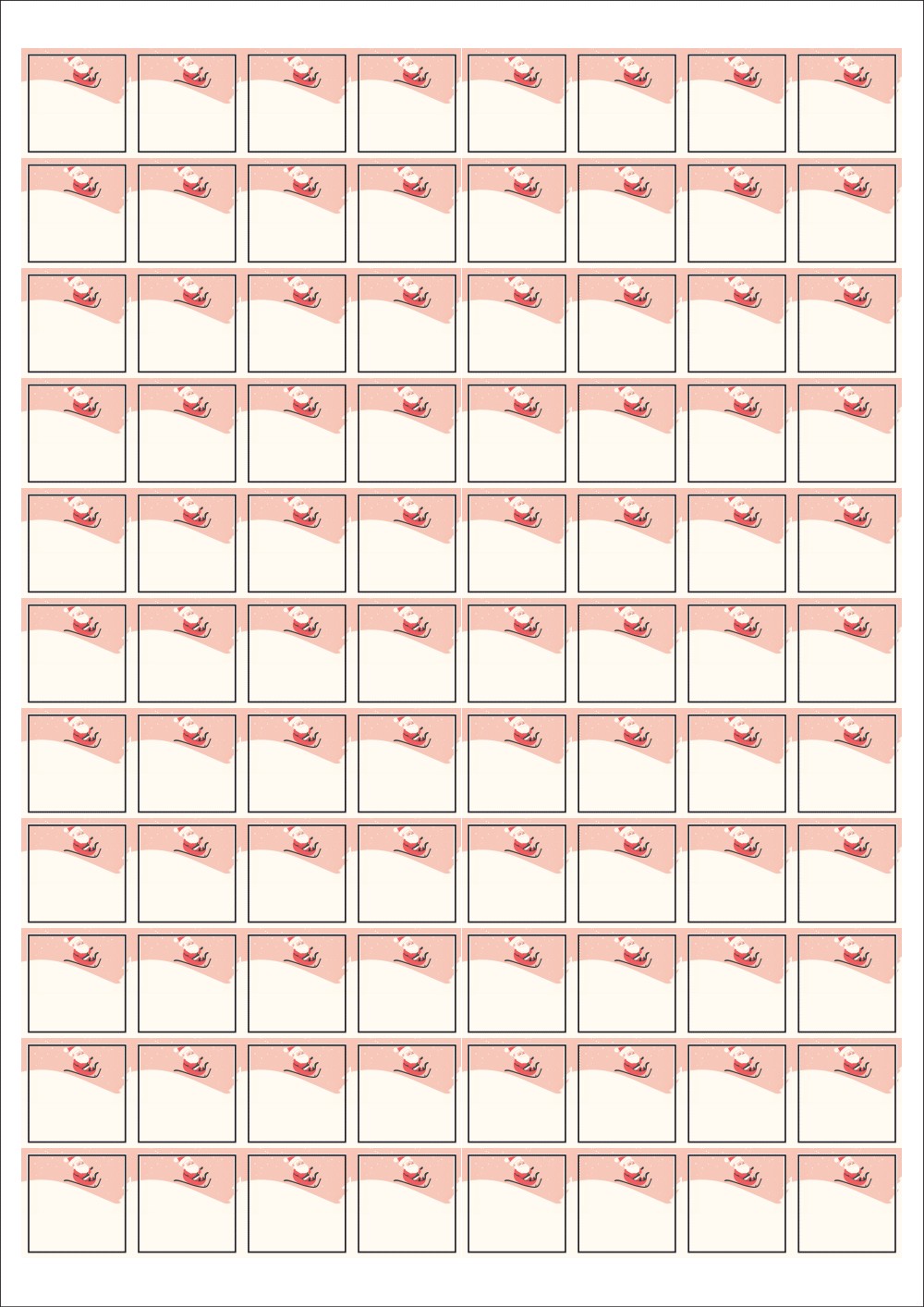 디자인된 A4 라벨지 출력용 라벨스티커, 규격코드: 888, 디자인코드: DA1482(산타 신난다), 22 x 22 (mm)