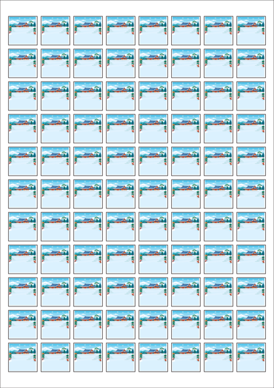 디자인된 A4 라벨지 출력용 라벨스티커, 규격코드: 888, 디자인코드: DA1567(설날의 아침1), 22 x 22 (mm)