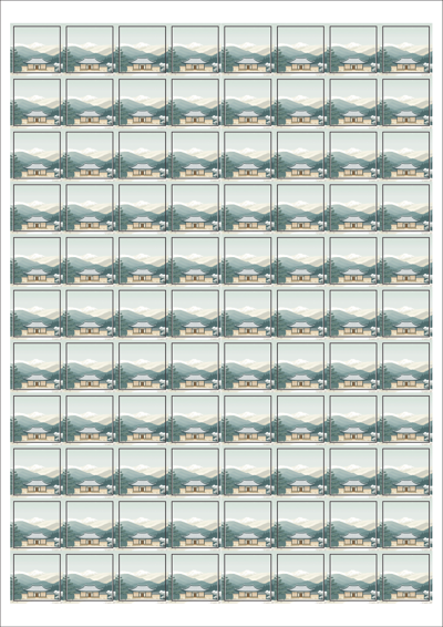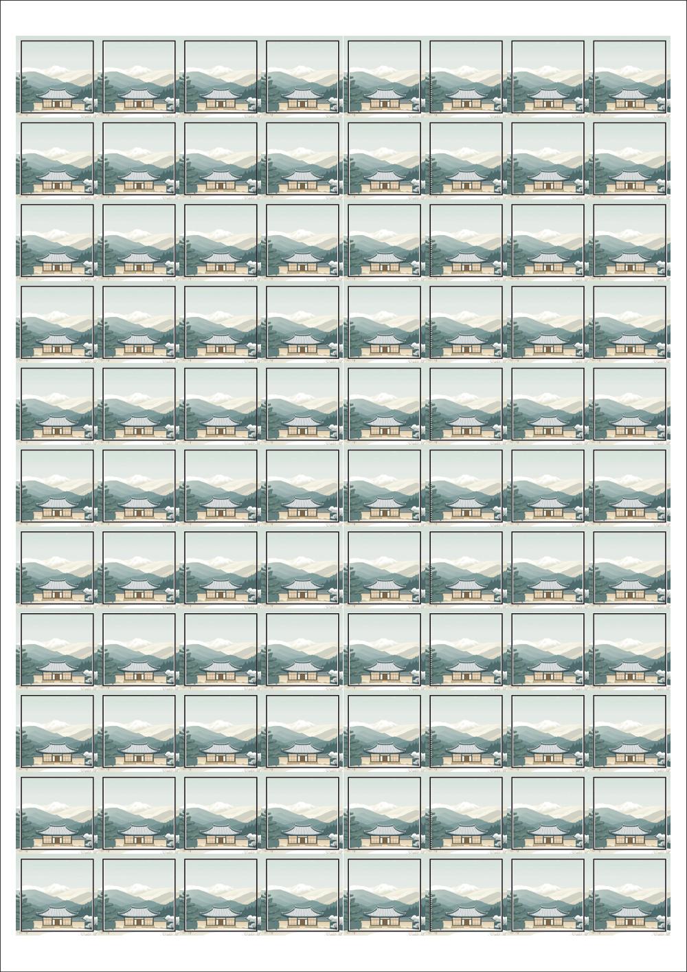 디자인된 A4 라벨지 출력용 라벨스티커, 규격코드: 888, 디자인코드: DA1578(고요한 설날의 아침), 22 x 22 (mm)