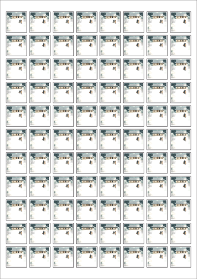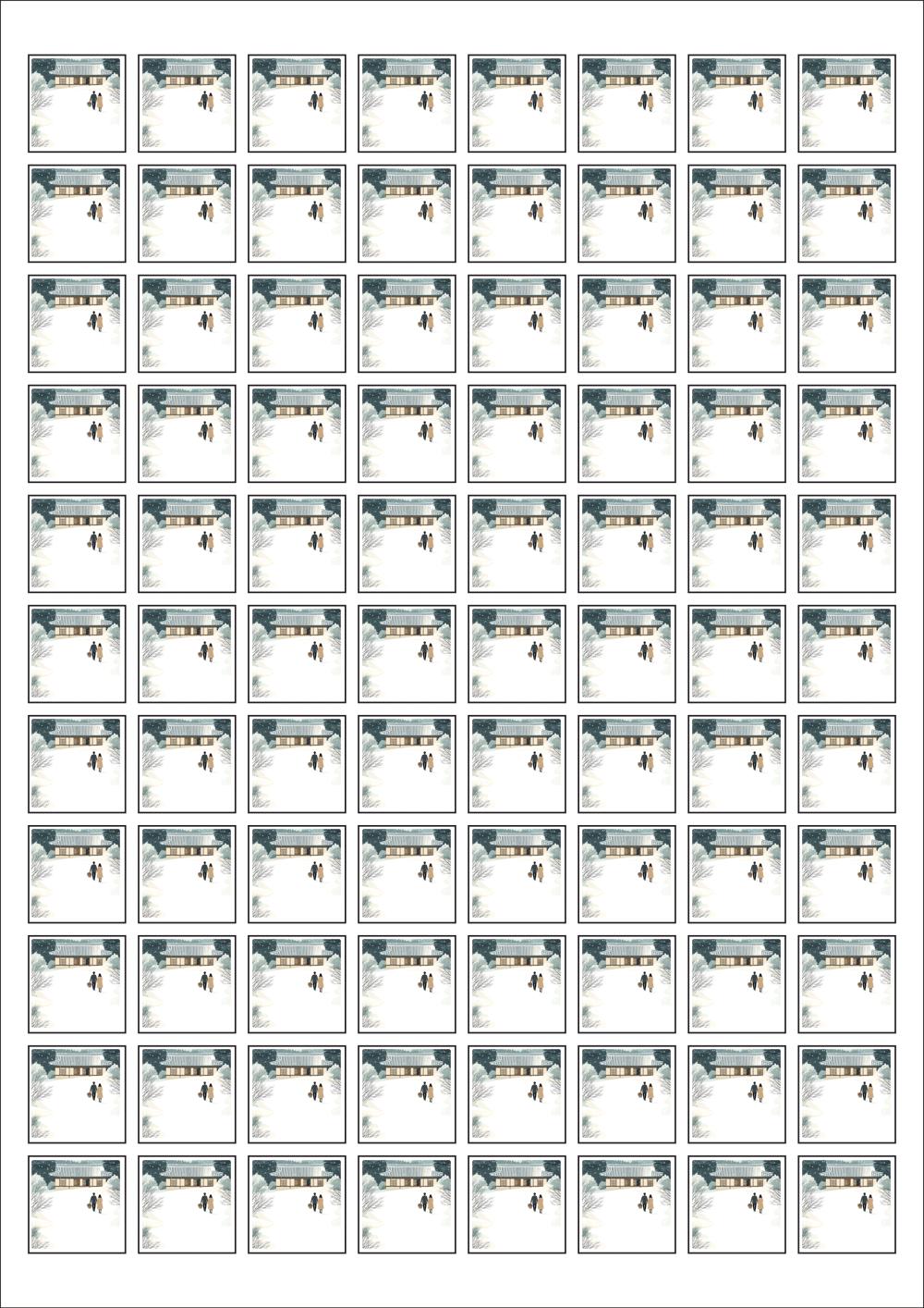 디자인된 A4 라벨지 출력용 라벨스티커, 규격코드: 888, 디자인코드: DA1580(눈내린 귀향의 따뜻한 길), 22 x 22 (mm)