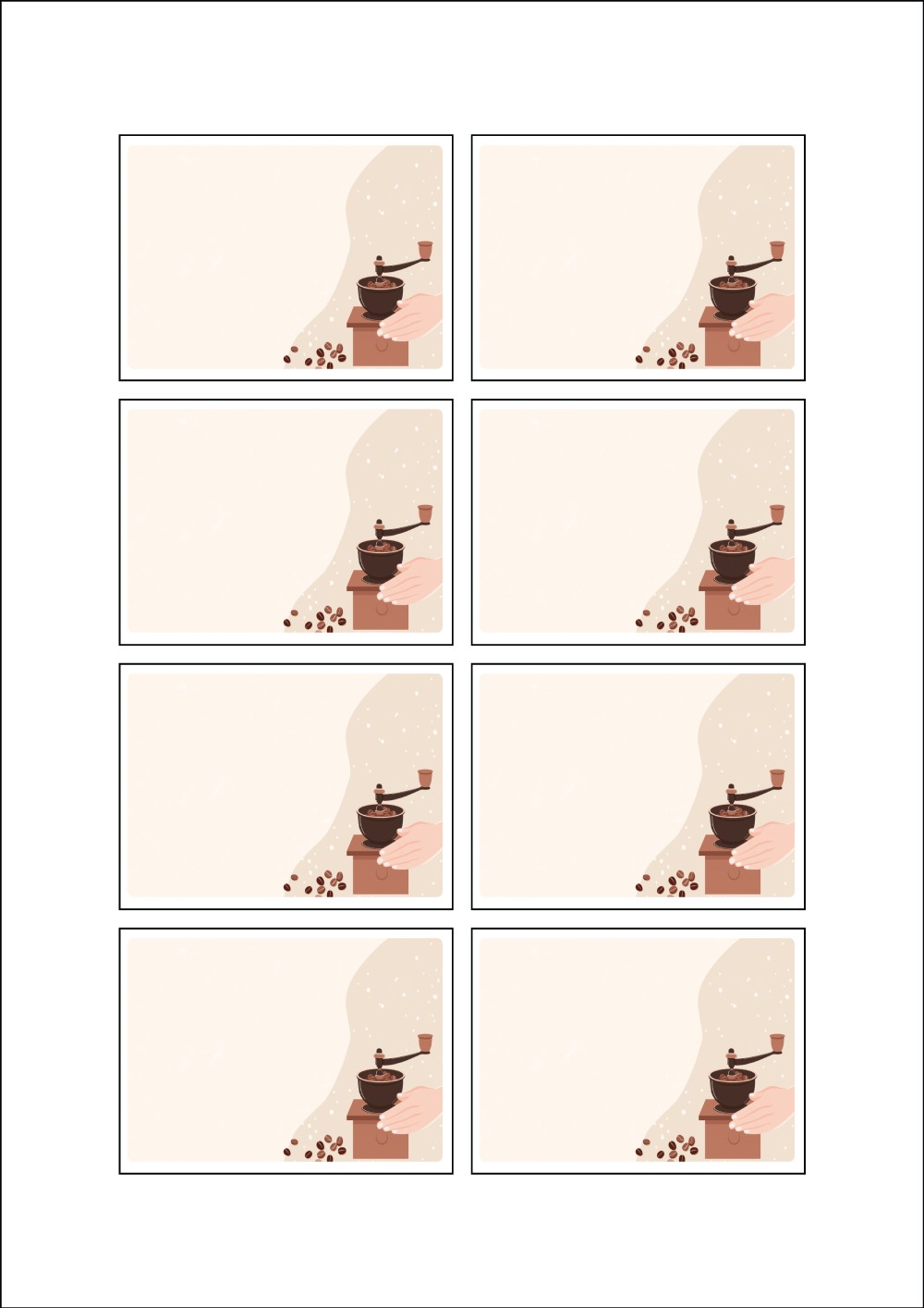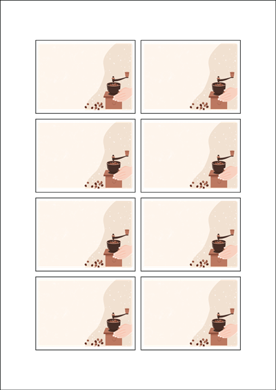 디자인된 A4 라벨지 출력용 라벨스티커, 규격코드: 908, 디자인코드: DA1412(감사의 커피한잔), 76 x 56 (mm)