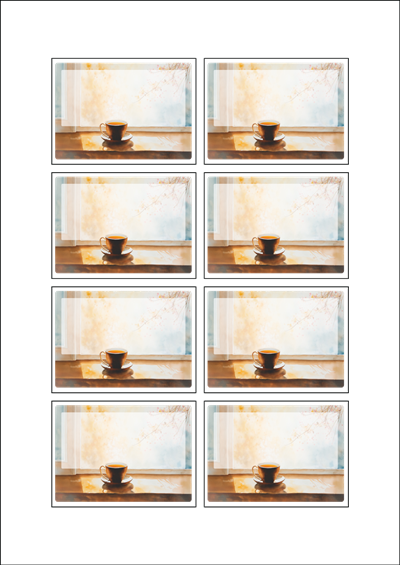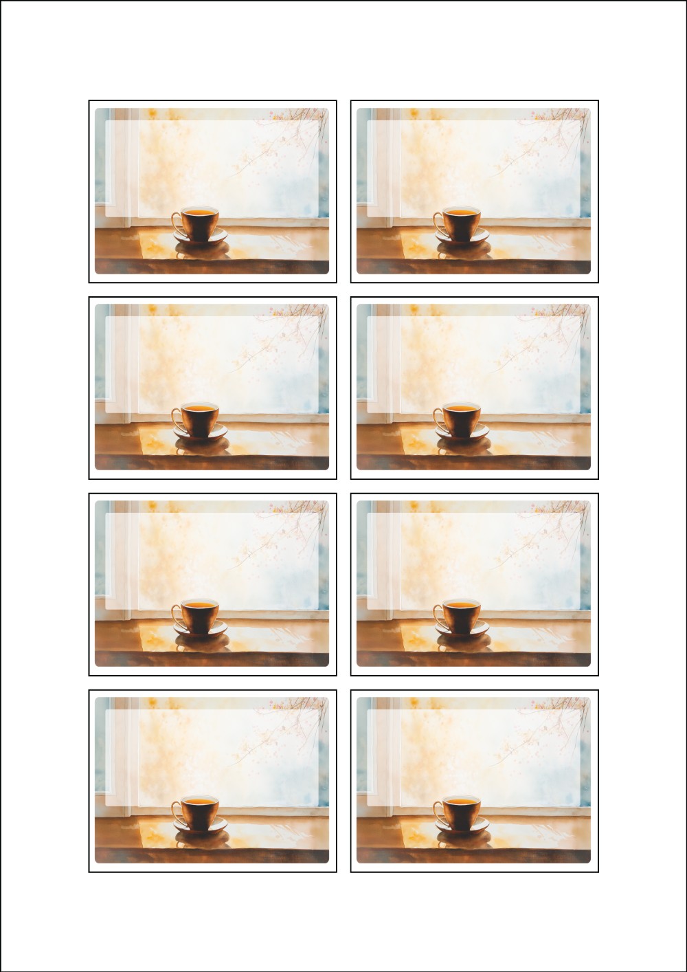 디자인된 A4 라벨지 출력용 라벨스티커, 규격코드: 908, 디자인코드: DA1425(가을날의 카페 창가에서), 76 x 56 (mm)