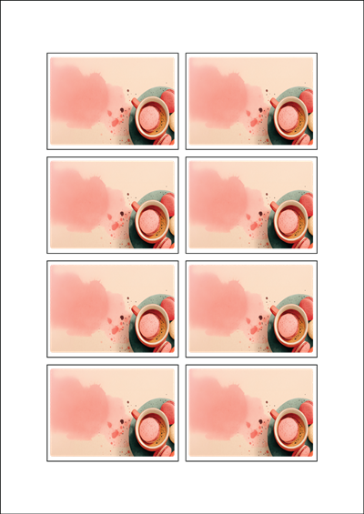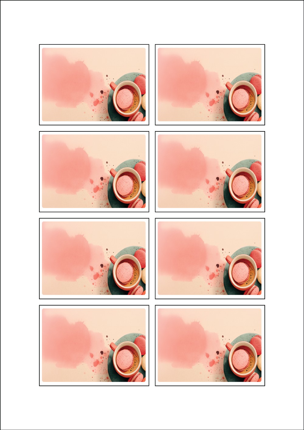 디자인된 A4 라벨지 출력용 라벨스티커, 규격코드: 908, 디자인코드: DA1444(마카롱 휴식타임), 76 x 56 (mm)