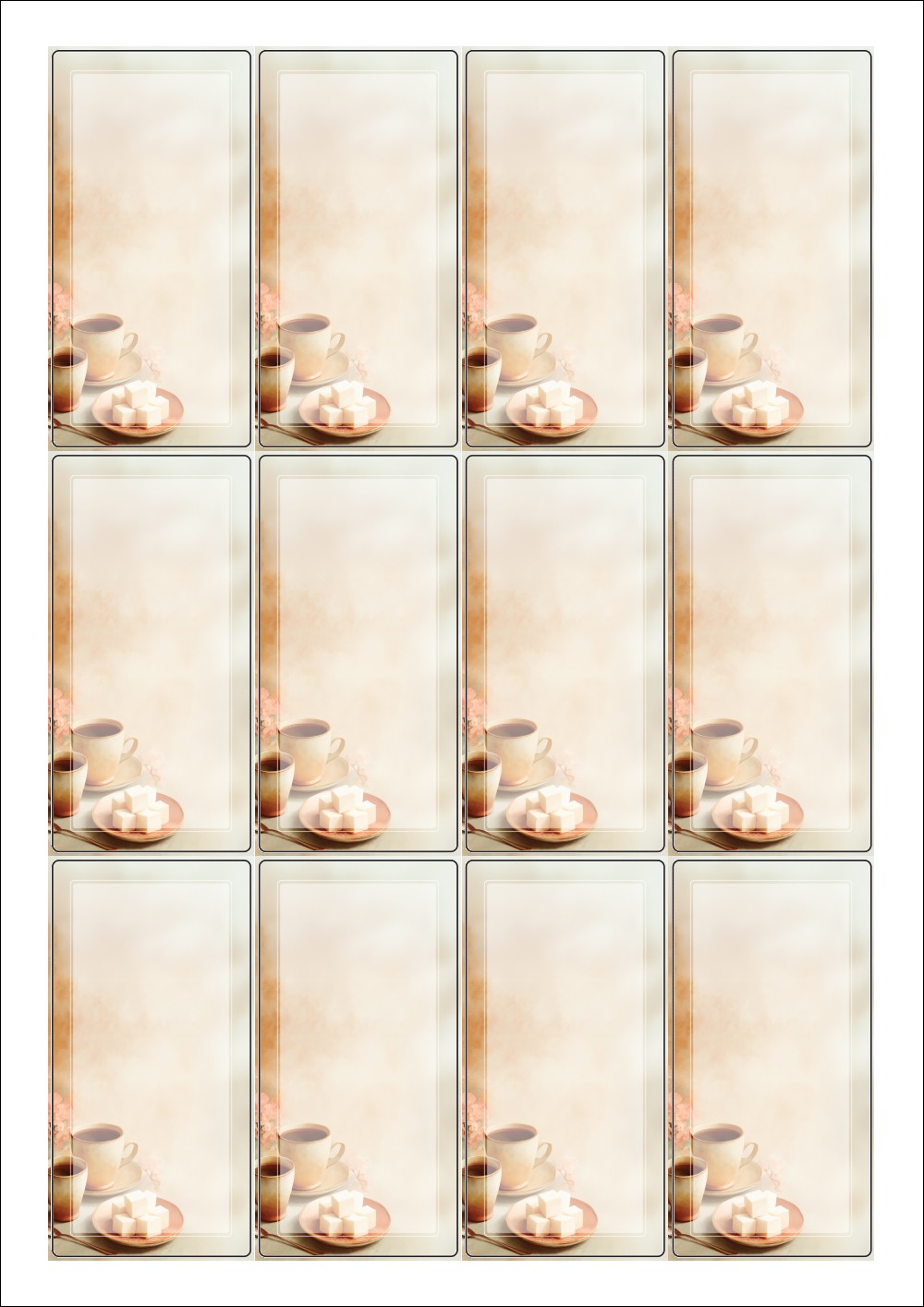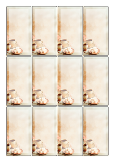 디자인된 A4 라벨지 출력용 라벨스티커, 규격코드: 912, 디자인코드: DA1447(차와 함께하는 가을 힐링타임), 45 x 90 (mm)
