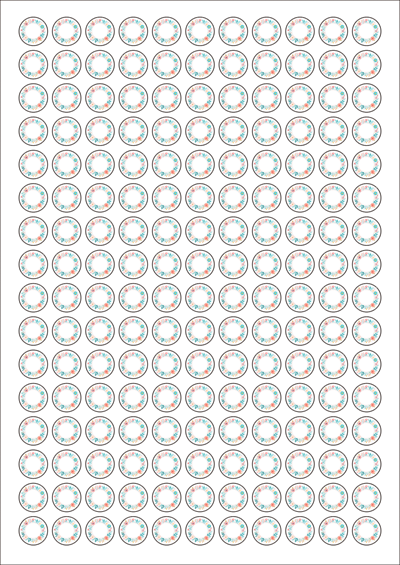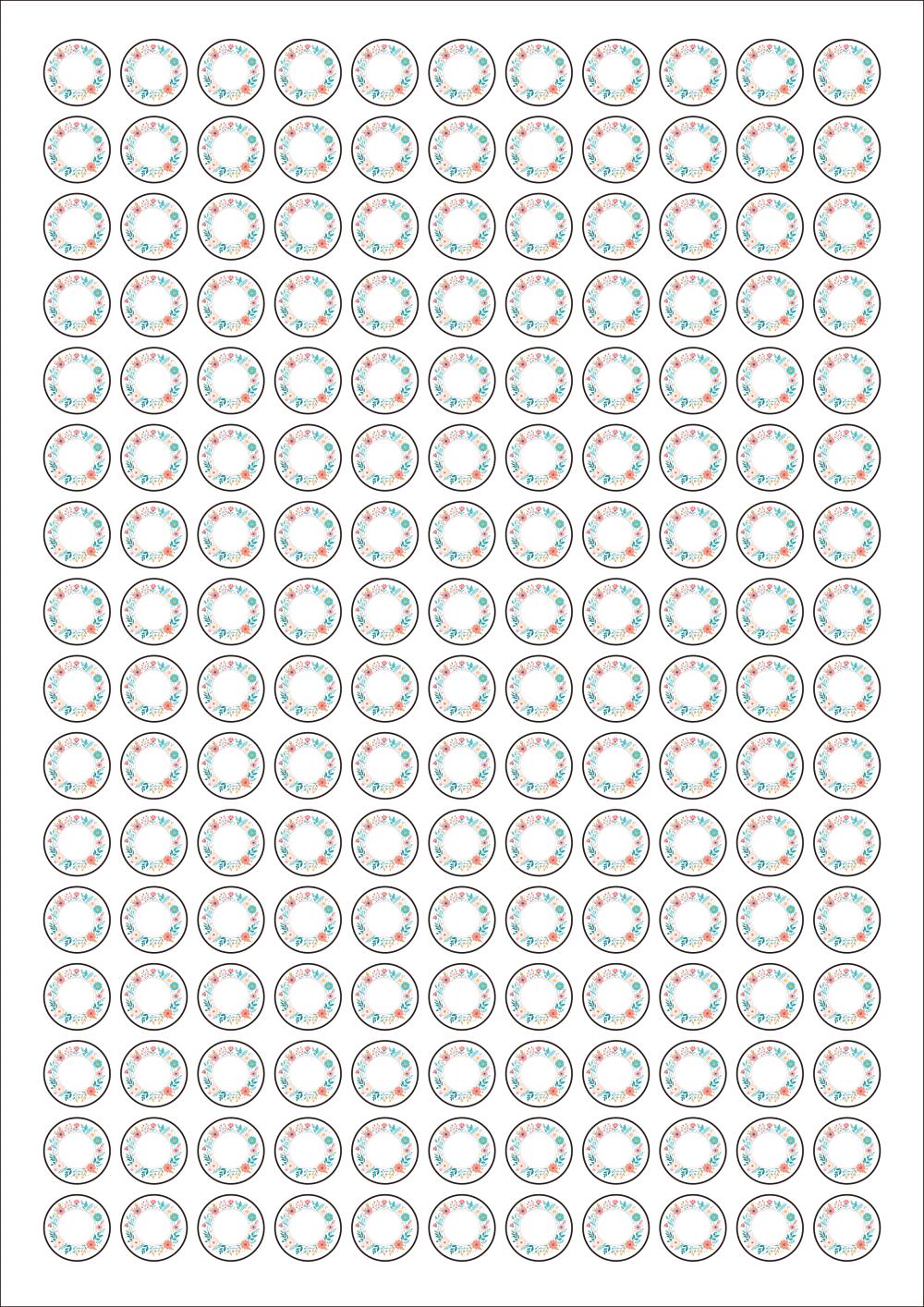 디자인된 A4 라벨지 출력용 라벨스티커, 규격코드: 915, 디자인코드: DA1360(플라워 메세지), Φ15 (mm) 원형