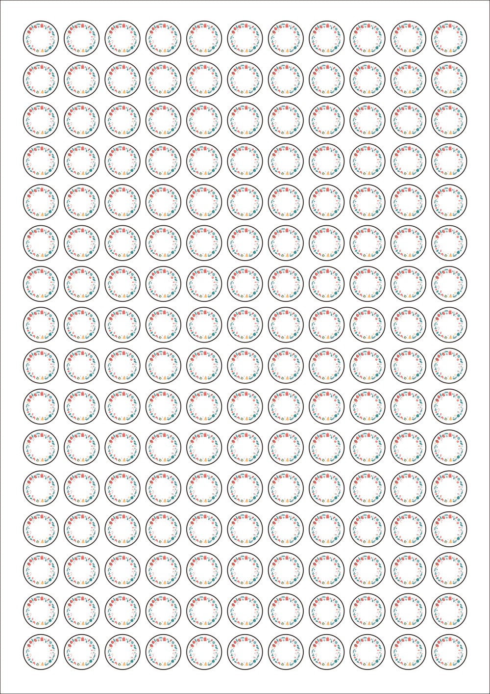 디자인된 A4 라벨지 출력용 라벨스티커, 규격코드: 915, 디자인코드: DA1456(welcome christmas!), Φ15 (mm) 원형