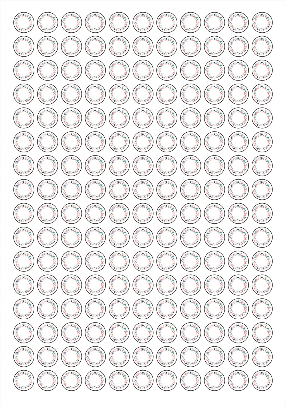 디자인된 A4 라벨지 출력용 라벨스티커, 규격코드: 915, 디자인코드: DA1457(어서오세요. 크리스마스), Φ15 (mm) 원형