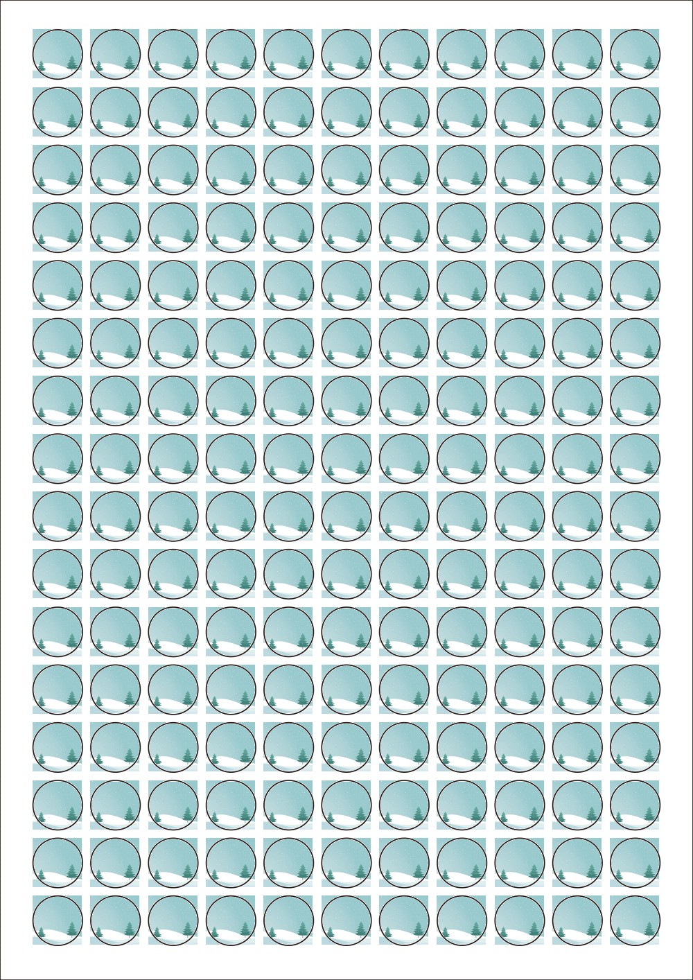 디자인된 A4 라벨지 출력용 라벨스티커, 규격코드: 915, 디자인코드: DA1500(메리크리스마스 미스터 심플), Φ15 (mm) 원형