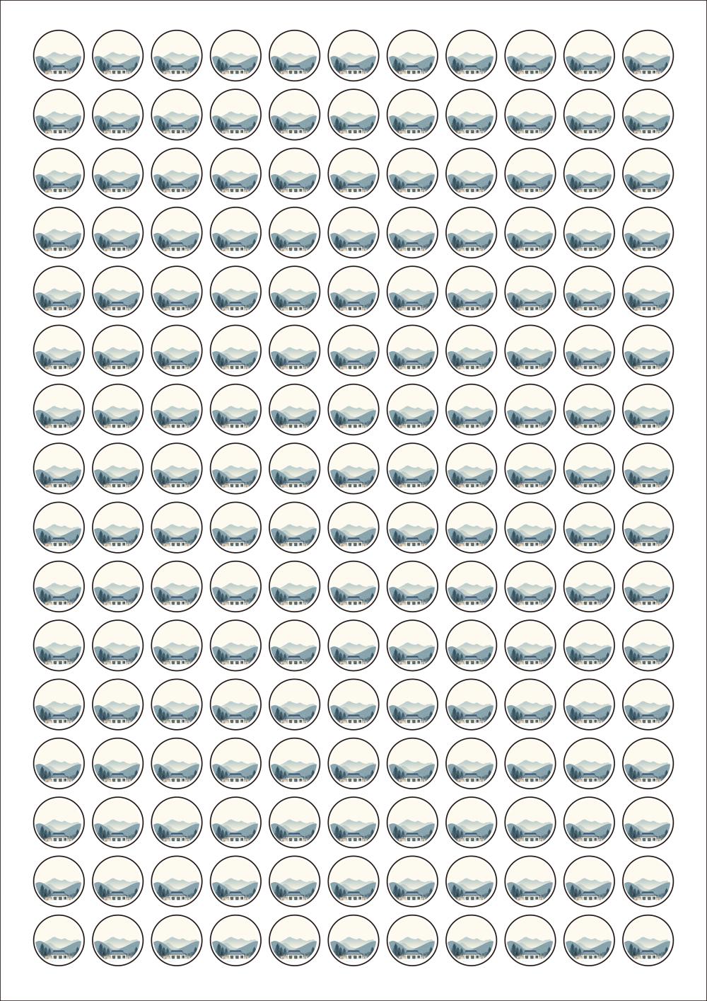 디자인된 A4 라벨지 출력용 라벨스티커, 규격코드: 915, 디자인코드: DA1581(설날의 감사의 인사), Φ15 (mm) 원형