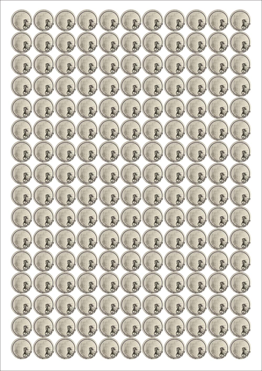 디자인된 A4 라벨지 출력용 라벨스티커, 규격코드: 915, 디자인코드: DA1584(말띠해의 메세지), Φ15 (mm) 원형