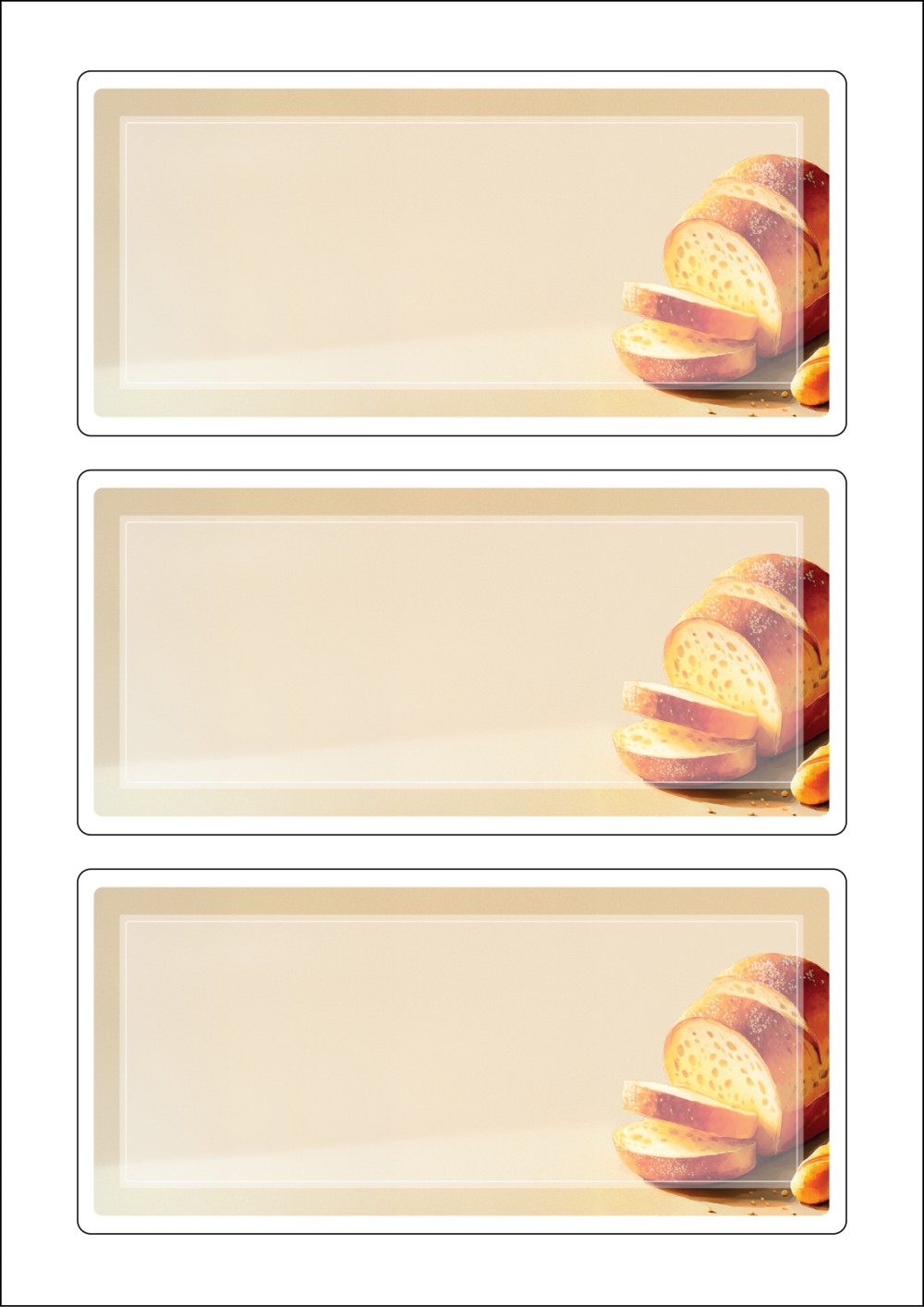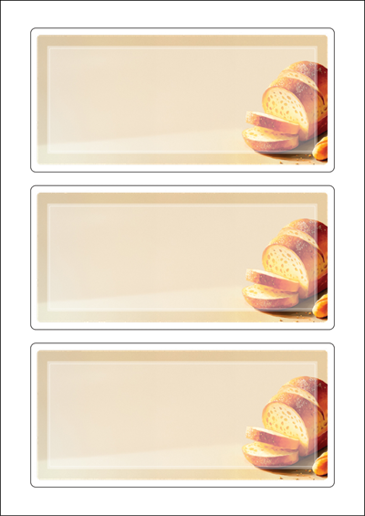 디자인된 A4 라벨지 출력용 라벨스티커, 규격코드: 916, 디자인코드: DA1450(맛있는 베이커리), 175 x 83 (mm)