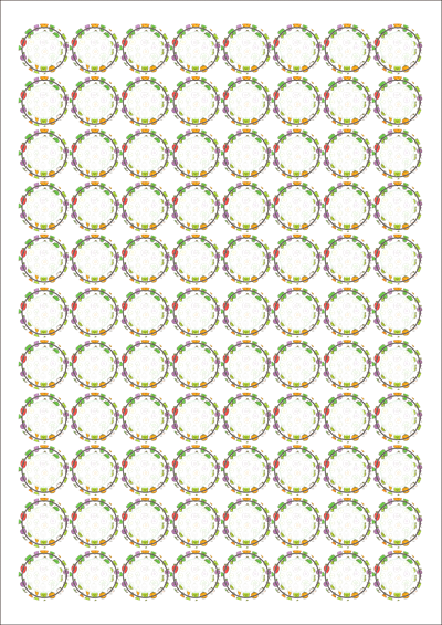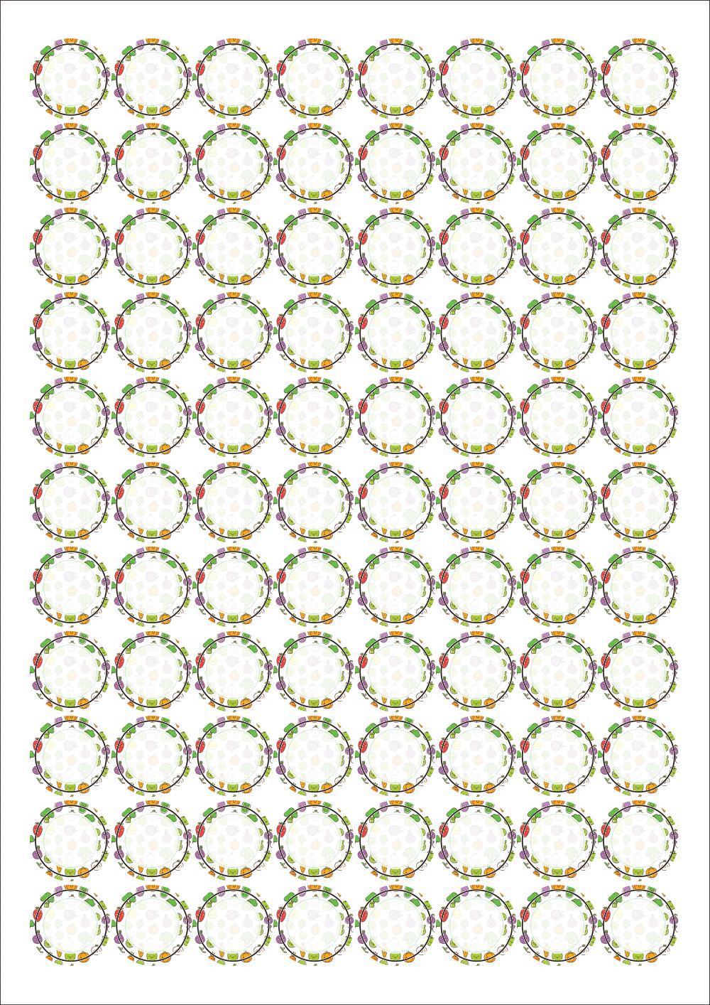 디자인된 A4 라벨지 출력용 라벨스티커, 규격코드: 921, 디자인코드: DA1377(건강한 야채 이야기), Φ21 (mm) 원형