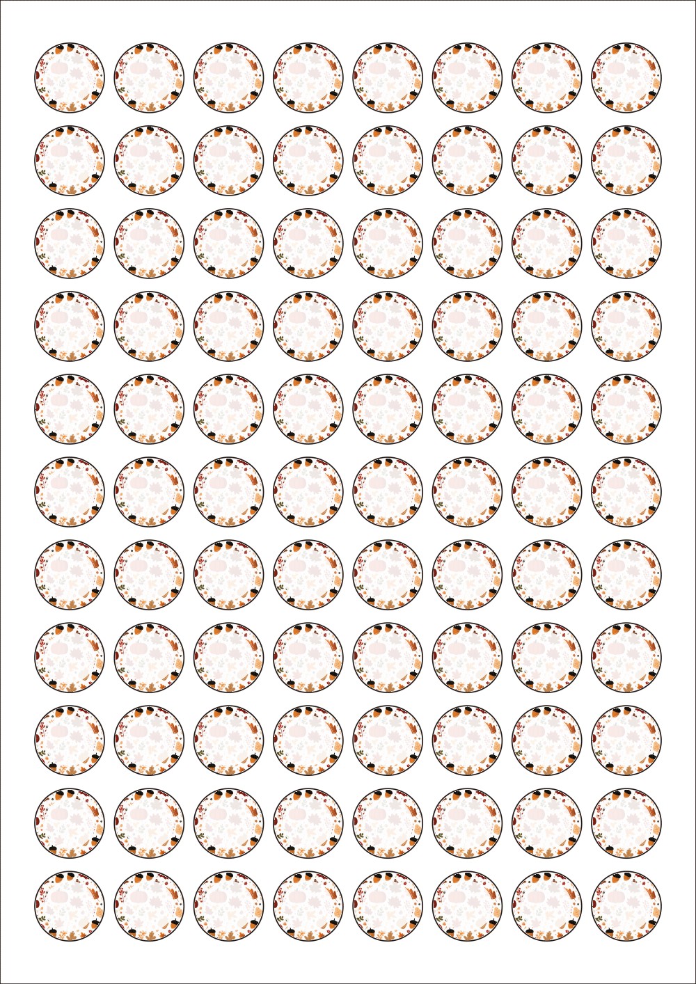 디자인된 A4 라벨지 출력용 라벨스티커, 규격코드: 921, 디자인코드: DA1443(가을 메세지 프레임 2), Φ21 (mm) 원형