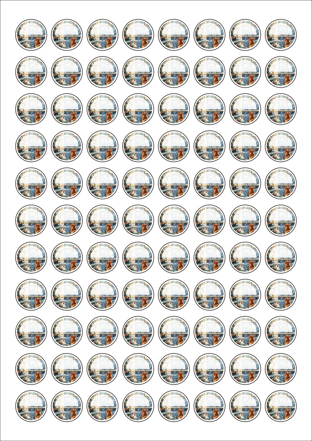디자인된 A4 라벨지 출력용 라벨스티커, 규격코드: 921, 디자인코드: DA1496(메리크리스마스냥!), Φ21 (mm) 원형