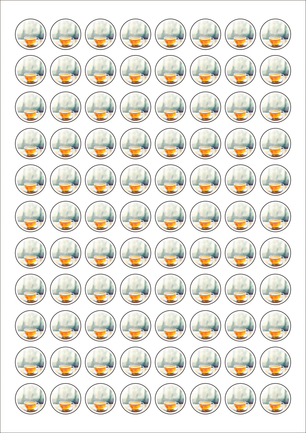 디자인된 A4 라벨지 출력용 라벨스티커, 규격코드: 921, 디자인코드: DA1501(차 한잔이 그리운 따뜻한 오후), Φ21 (mm) 원형